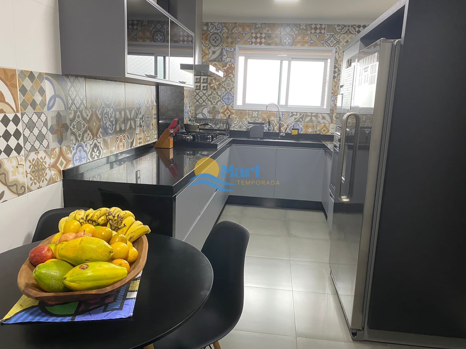 Apartamento à venda no bairro Caminho das Tartarugas no Guarujá, SP. 3 dormitórios (sendo 3 suítes), sala dois ambientes com sacada envidraçada, cozinha planejada de alta qualidade, área de serviço, lavabo e três vagas de garagem.