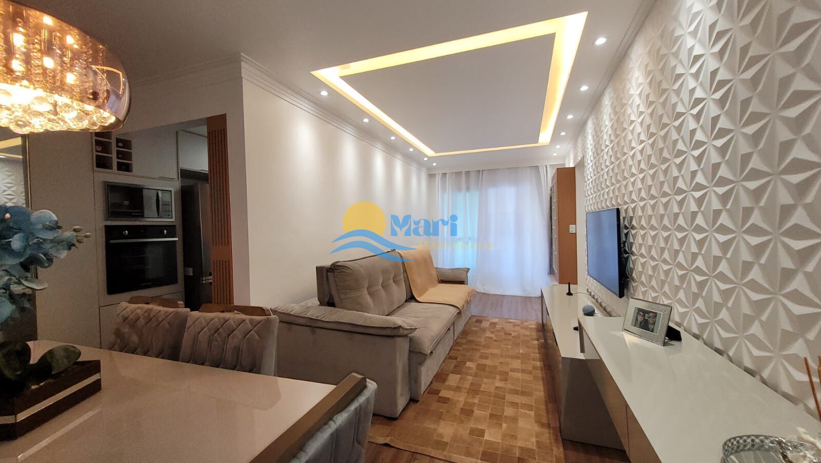 Apartamento à venda no bairro Boqueirão em Praia Grande, SP. 2 dormitórios sendo 1 suíte, sala dois ambientes com sacada, cozinha planejada, área de serviço, banheiro social e uma vaga de garagem