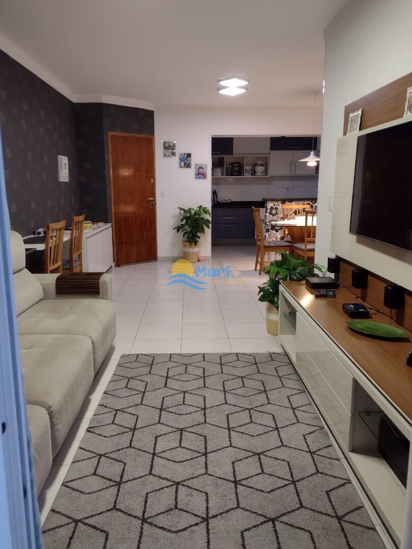 Apartamento à venda no bairro Guilhermina em Praia Grande, SP. 3 dormitórios sendo 1 suíte, sala dois ambientes com sacada, cozinha planejada, área de serviço, banheiro social e duas vagas de garagem coletiva. Será vendido com mobilia, mas tira todos os eletronicos e eletrodomésticos.