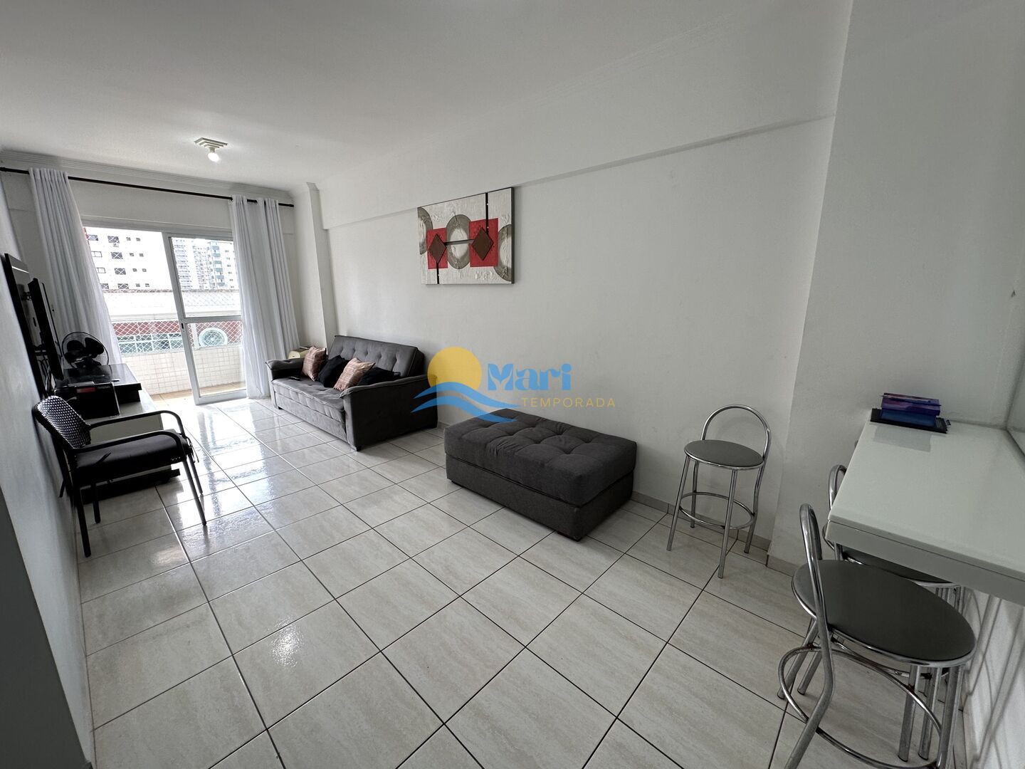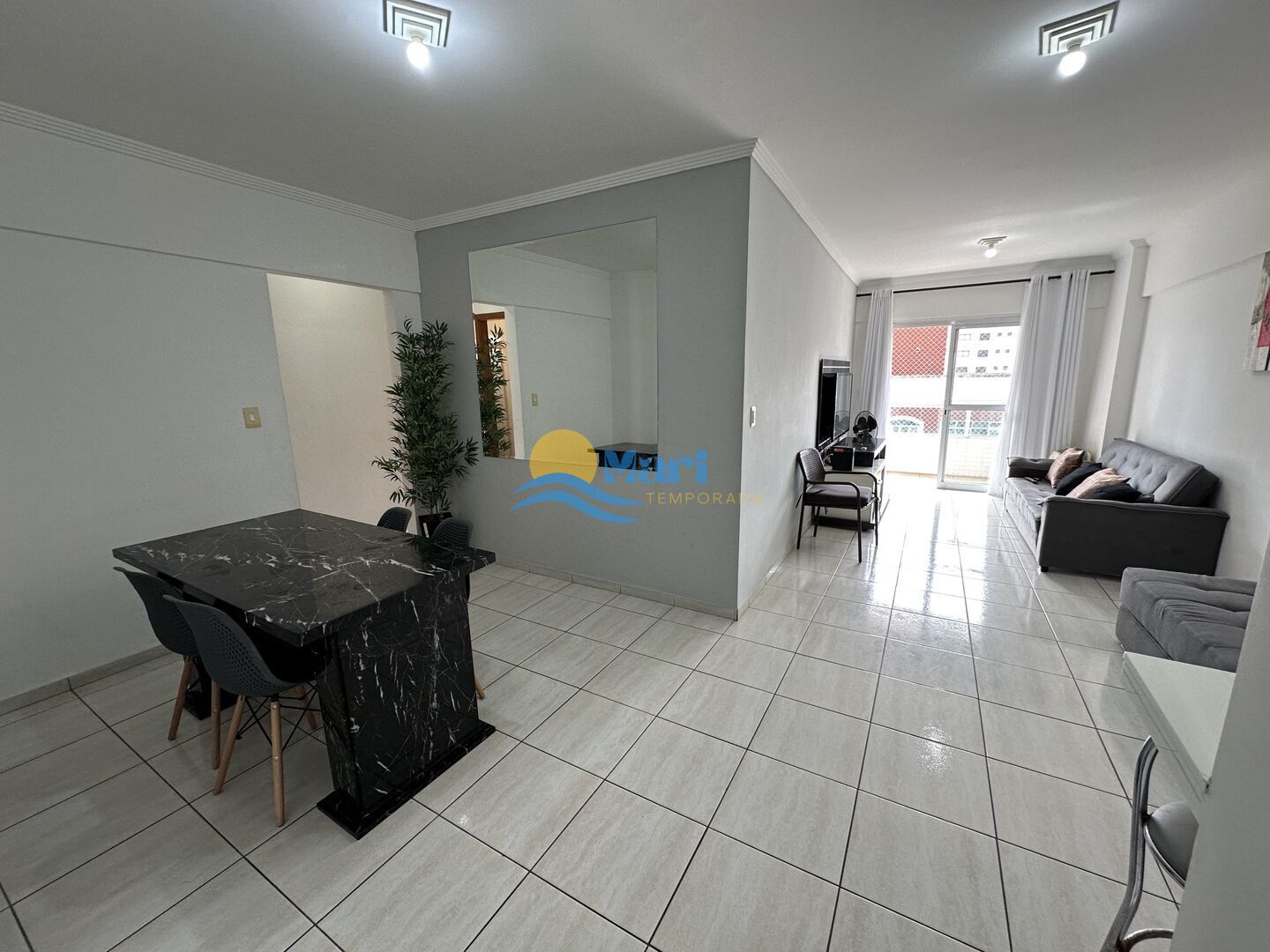 Apartamento à venda no bairro Tupi em Praia Grande, SP. 2 dormitórios sendo 1 suíte, sala dois ambientes com sacada, cozinha planejada, área de serviço, banheiro social e uma vaga de garagem.