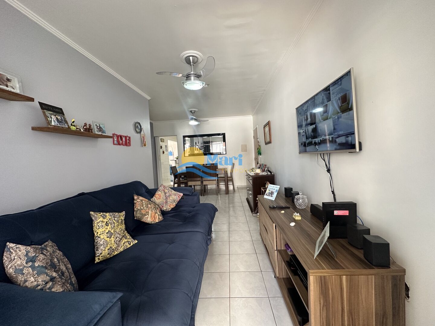 Apartamento à venda no bairro Tupi em Praia Grande, SP. 2 dormitórios sendo 1 suíte, sala dois ambientes, cozinha, área de serviço, banheiro social e uma vaga de garagem.