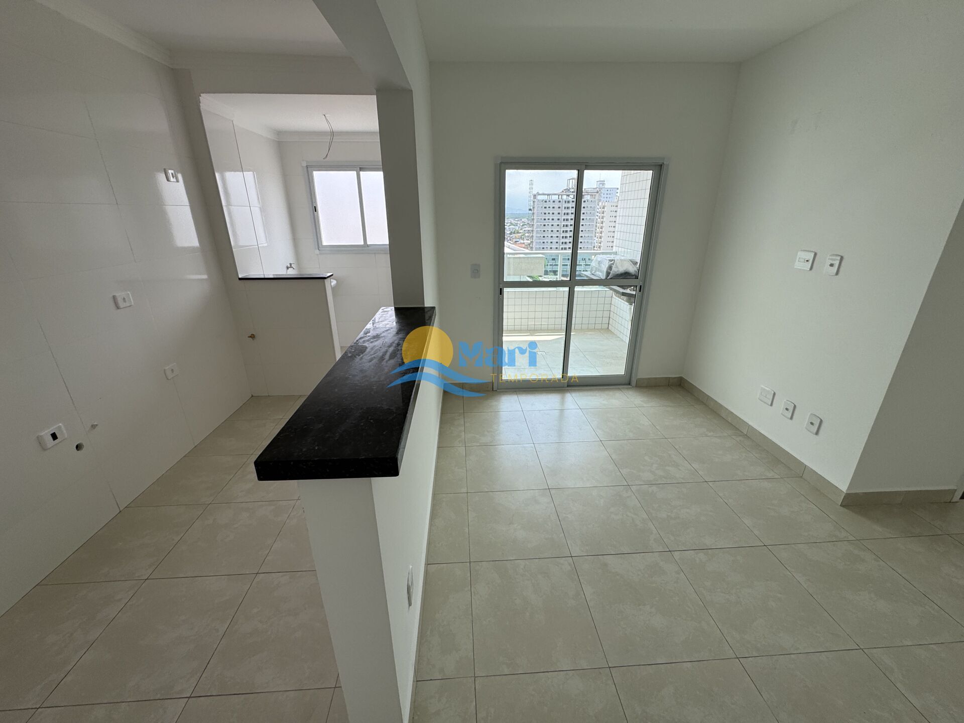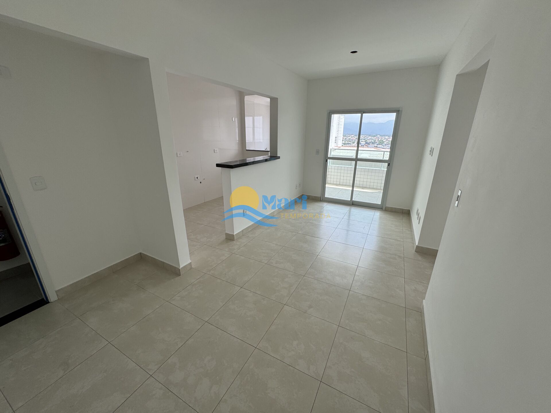 Apartamento à venda no bairro Aviação em Praia Grande, SP. 2 dormitórios sendo 1 suíte, sala dois ambientes, cozinha americana, área de serviço, banheiro social e uma vaga de garagem.
