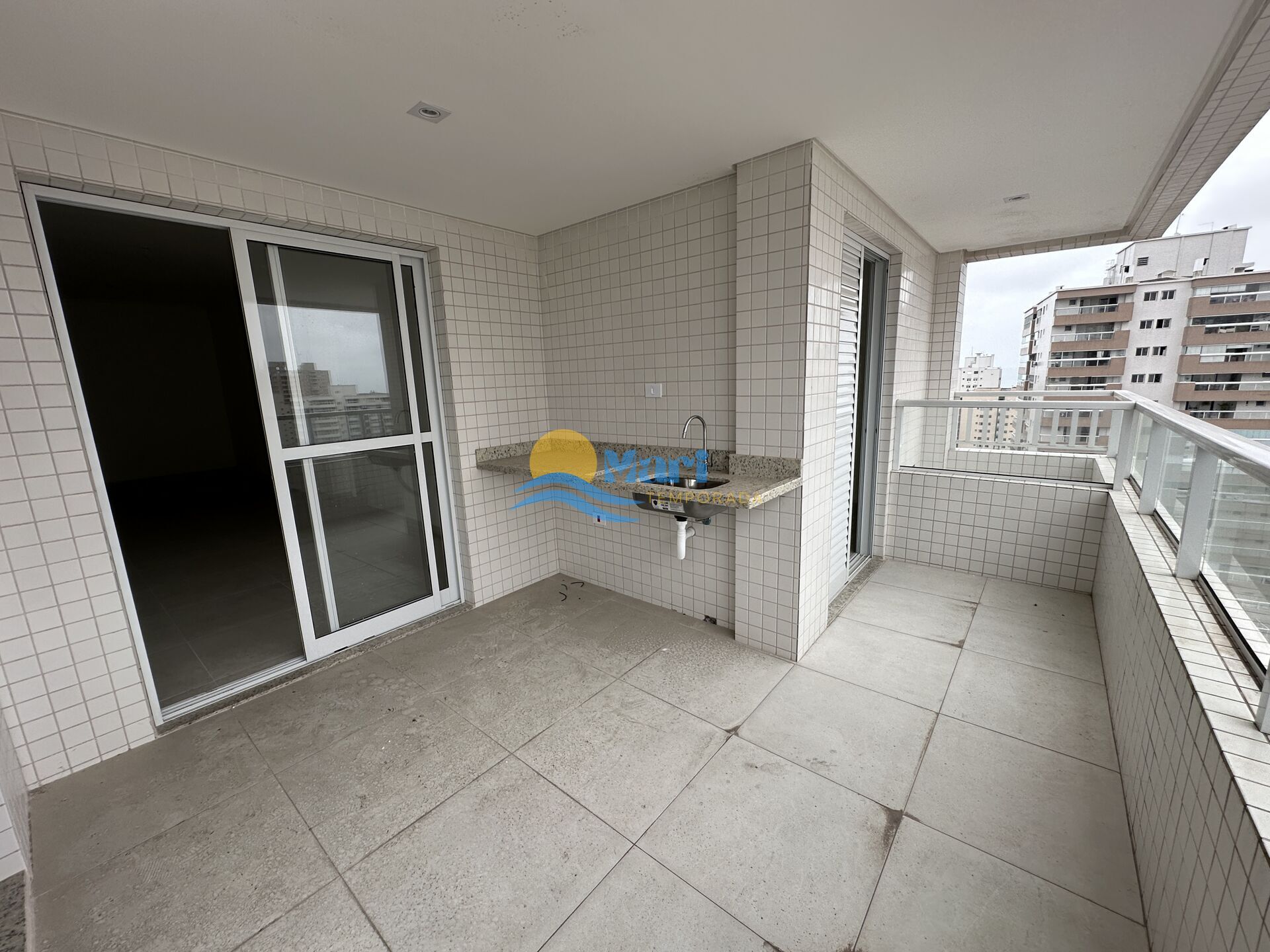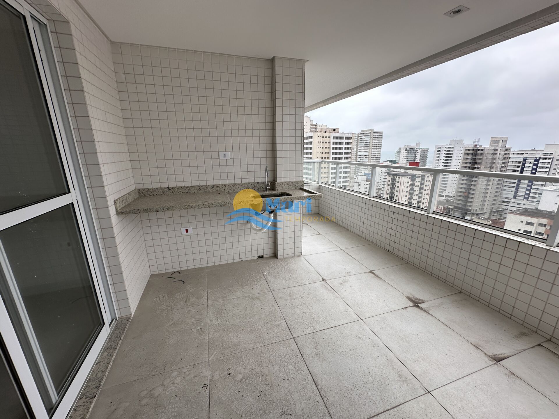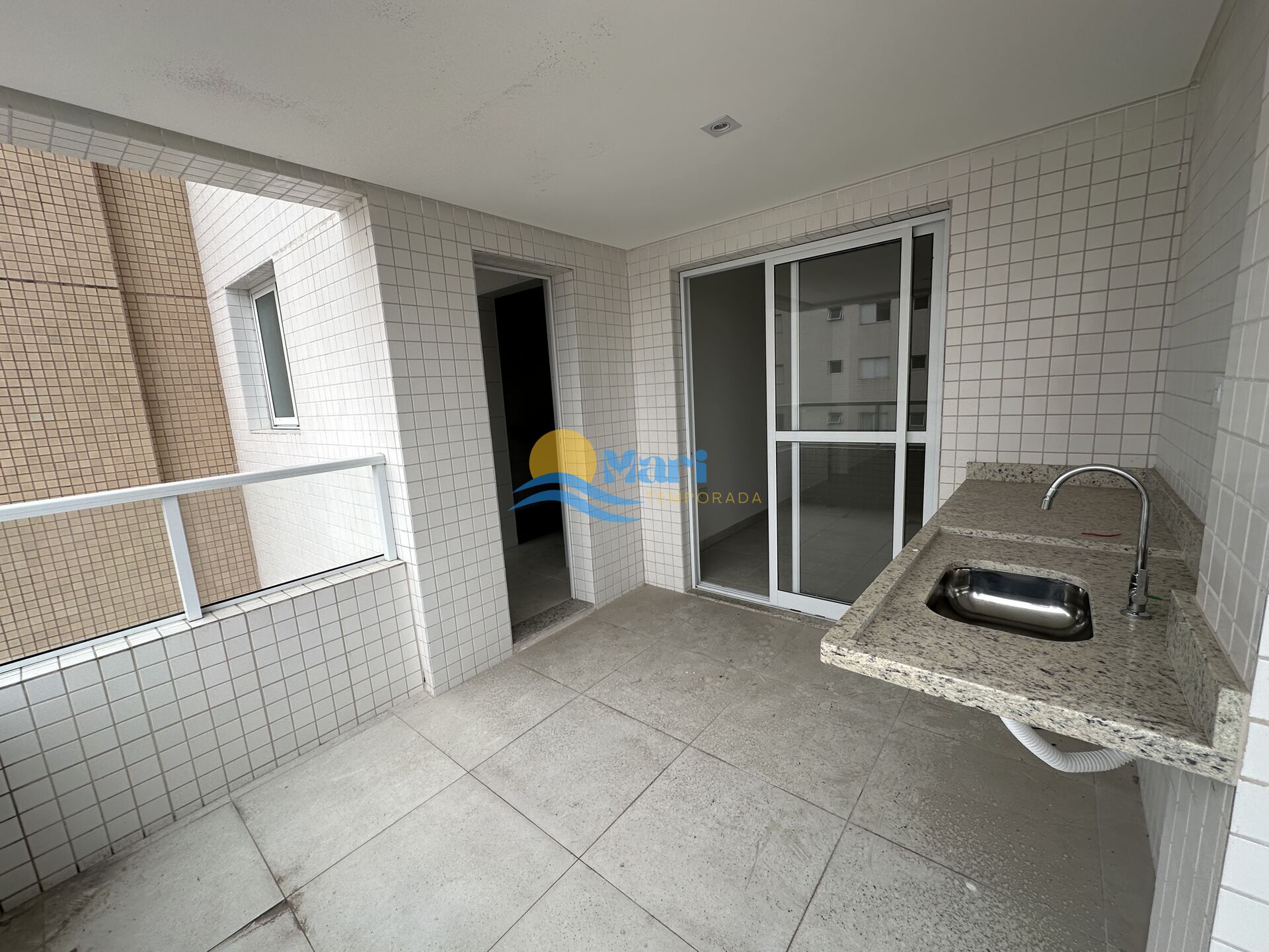 Apartamento à venda no bairro Aviação em Praia Grande, SP. 2 dormitórios sendo 2 suítes, sala dois ambientes com sacada, cozinha americana, área de serviço, area tecnica, lavabo e duas vagas de garagem.