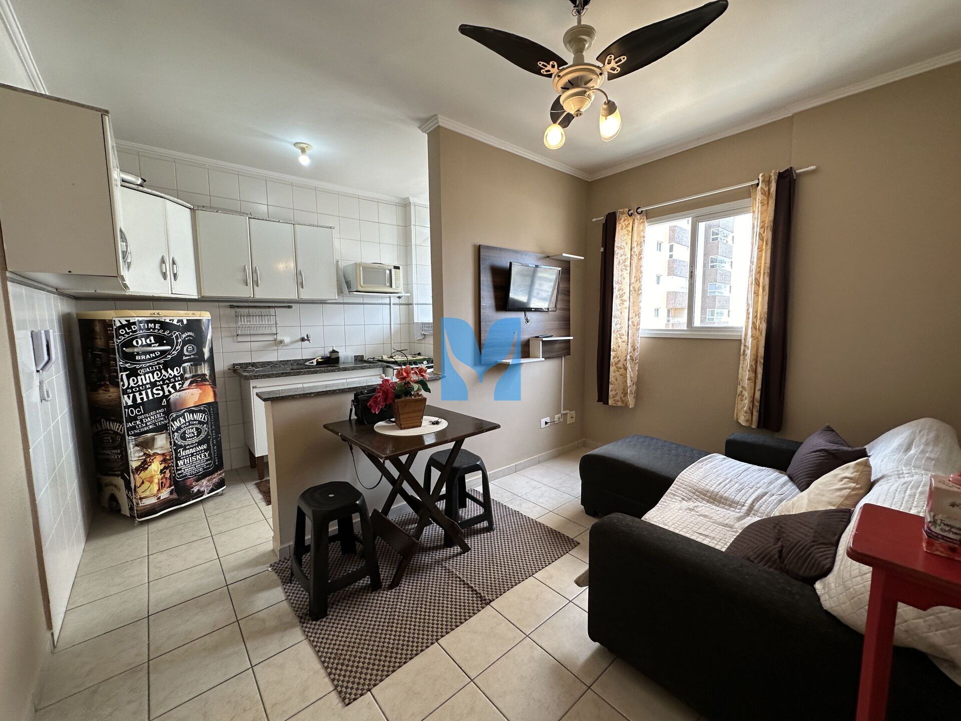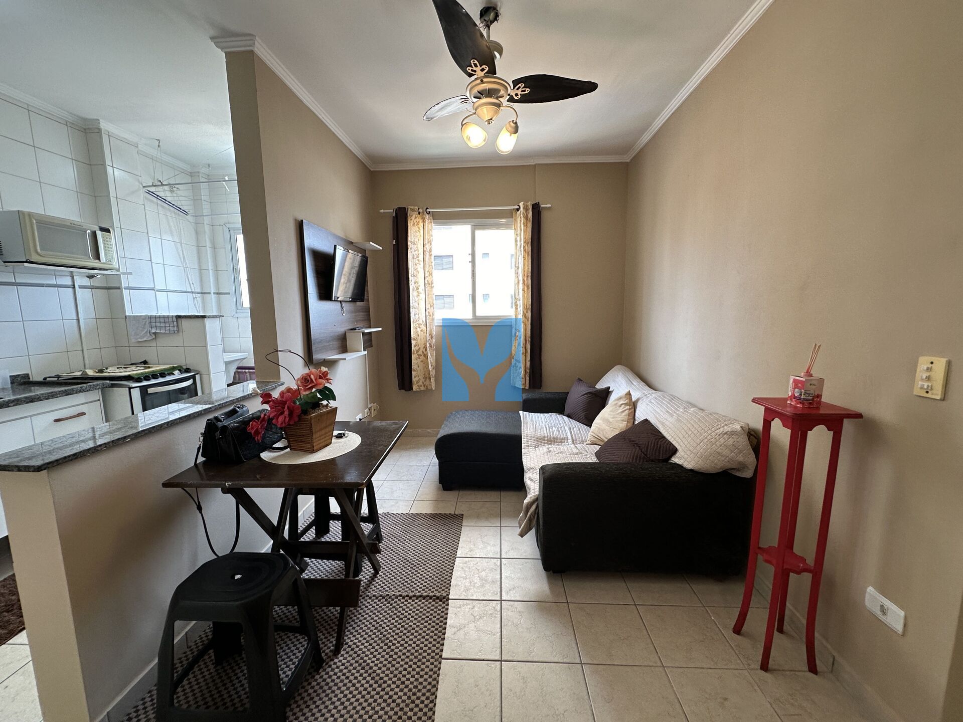 Apartamento à venda no bairro Aviação em Praia Grande, SP. com 1 dormitório, sala, cozinha, área de serviço, banheiro social e 1 vaga de garagem. Fica mobiliado.