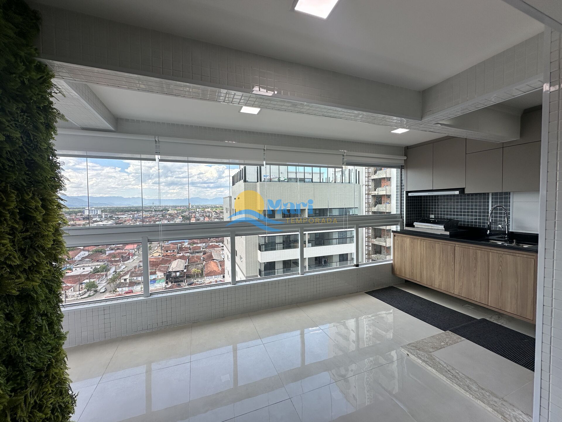 Apartamento Alto Padrão à venda no bairro Maracanã em Praia Grande, SP. 2 dormitórios sendo 1 suíte, sala dois ambientes integrada com a sacada, envidraçada vista livre para o mar e para a montanha, cozinha planejada e integrada com a sacada, área de serviço, banheiro social e 1 vaga de garagem. Porteira fechada.