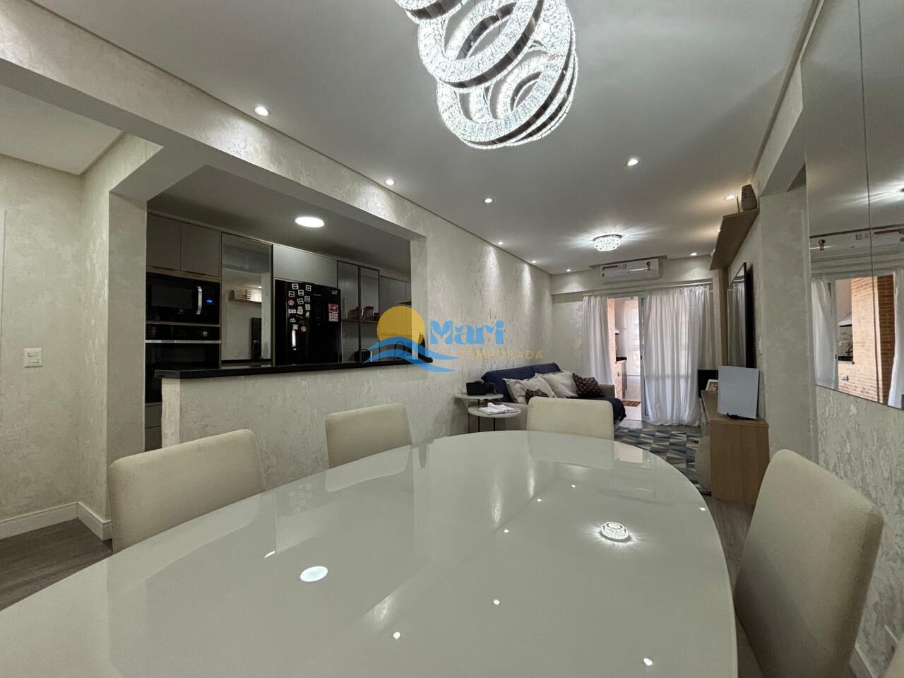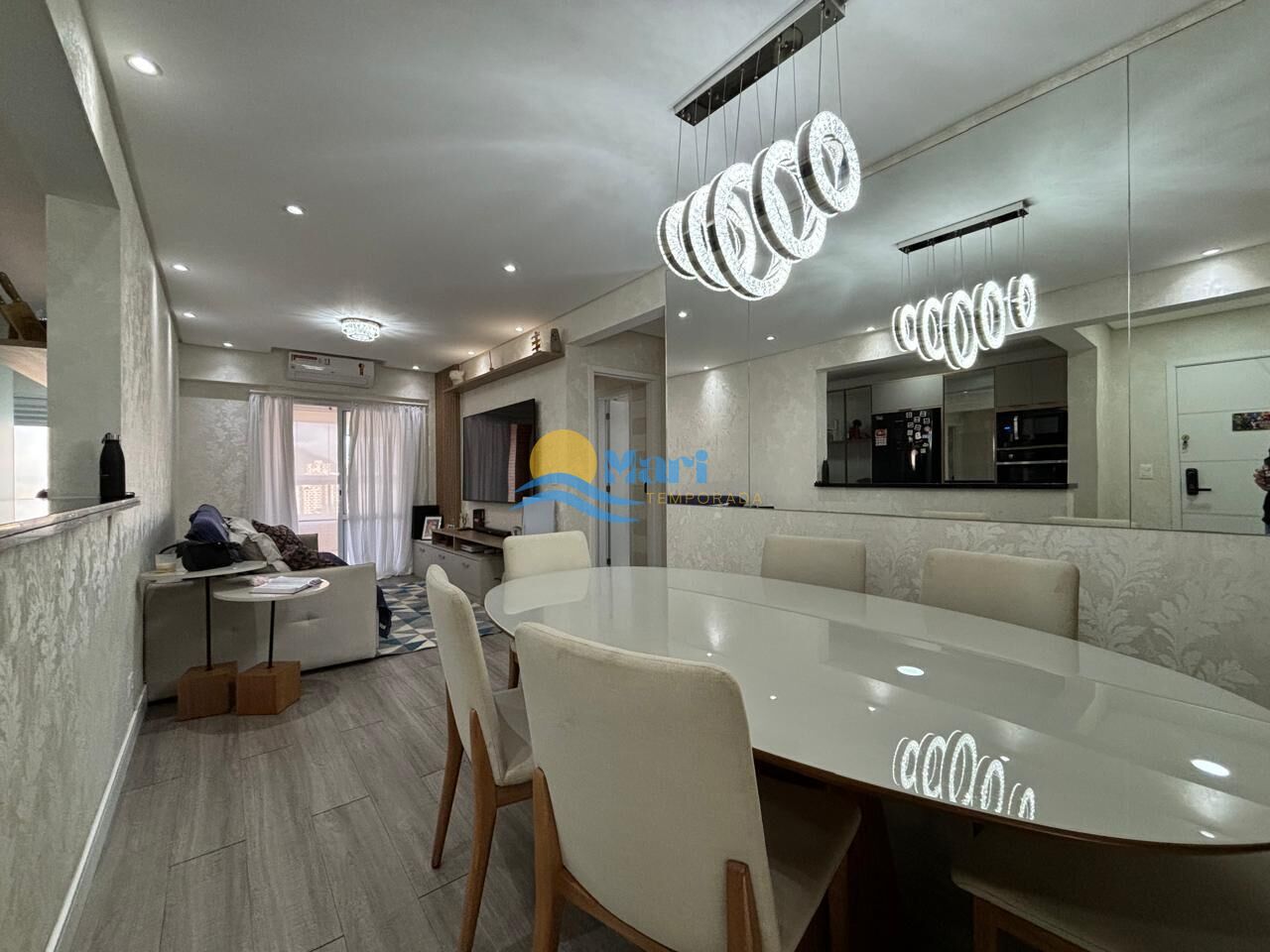 Apartamento à venda no bairro Aviação em Praia Grande, SP. 2 dormitórios sendo 1 suíte, sala dois ambientes com sacada envidraçada, cozinha planejada de alta qualidade, área de serviço, banheiro social e uma vaga de garagem. Será vendido mobiliado retirando apenas o vídeo game e Monitor.