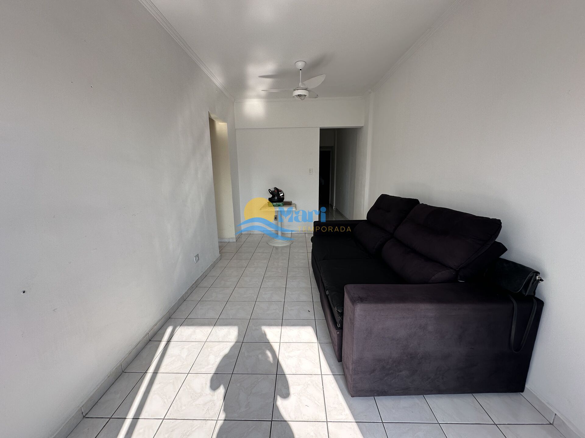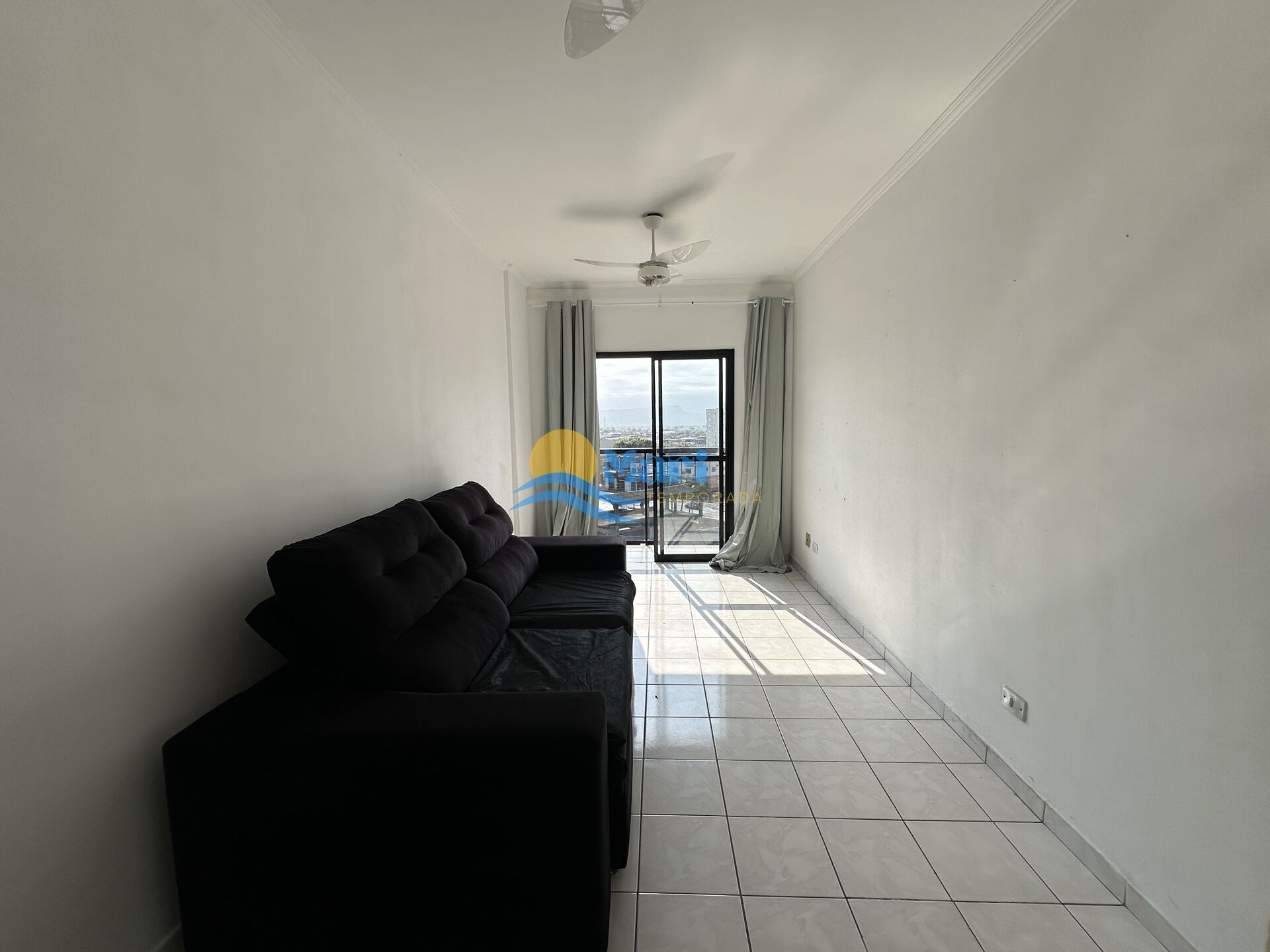 Apartamento à venda no bairro Tupi em Praia Grande, SP. 1 dormitório, sala com sacada, cozinha com móveis planejados, área de serviço bem arejada, banheiro social e uma vaga de garagem.