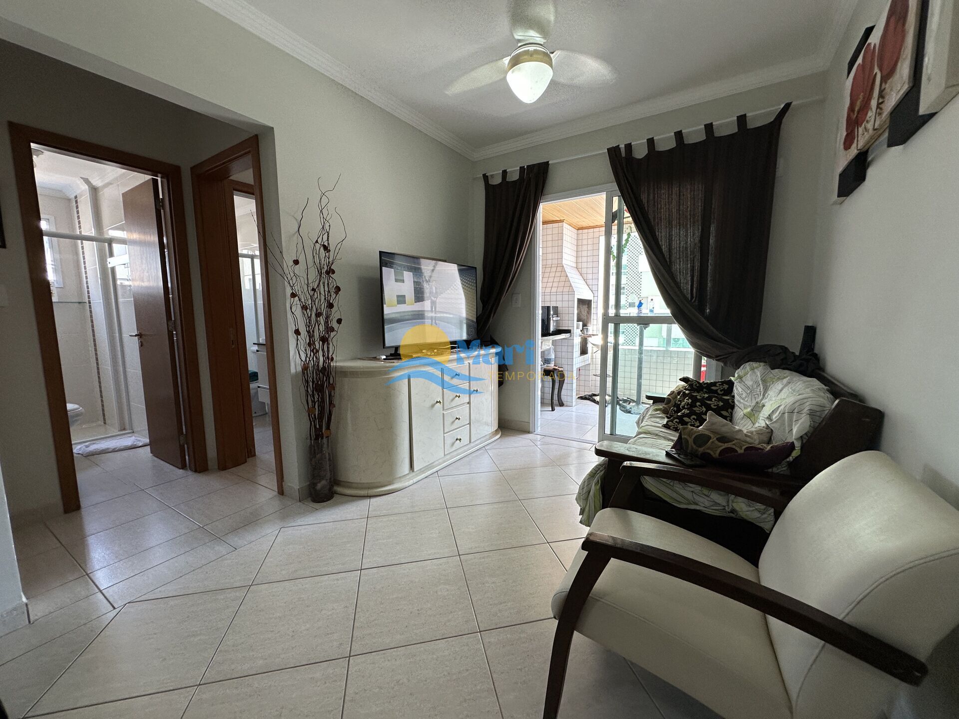 Apartamento à venda no bairro Aviação em Praia Grande, SP. 2 dormitórios, sendo 1 suite, sala dois ambientes com sacada gourmet, cozinha, área de Serviço, banheiro social e uma vaga de garagem.