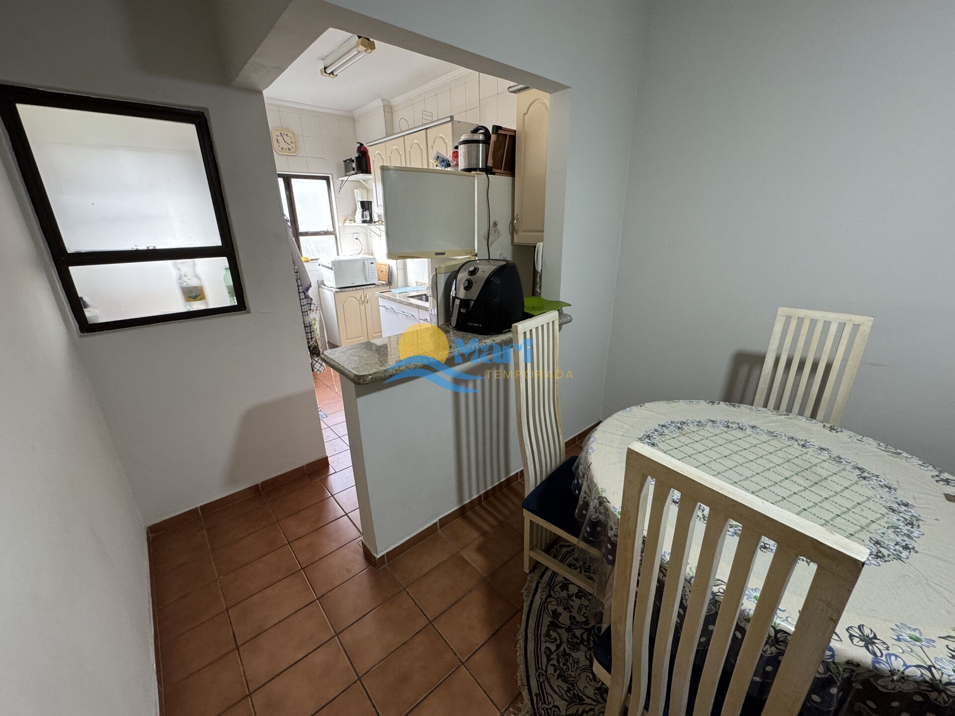 Apartamento à venda no bairro Avição em Praia Grande, SP. 2 dormitórios (sendo 1 suíte), sala dois ambientes com sacada envidraçada, cozinha, área de serviço, banheiro social e uma vaga de garagem.