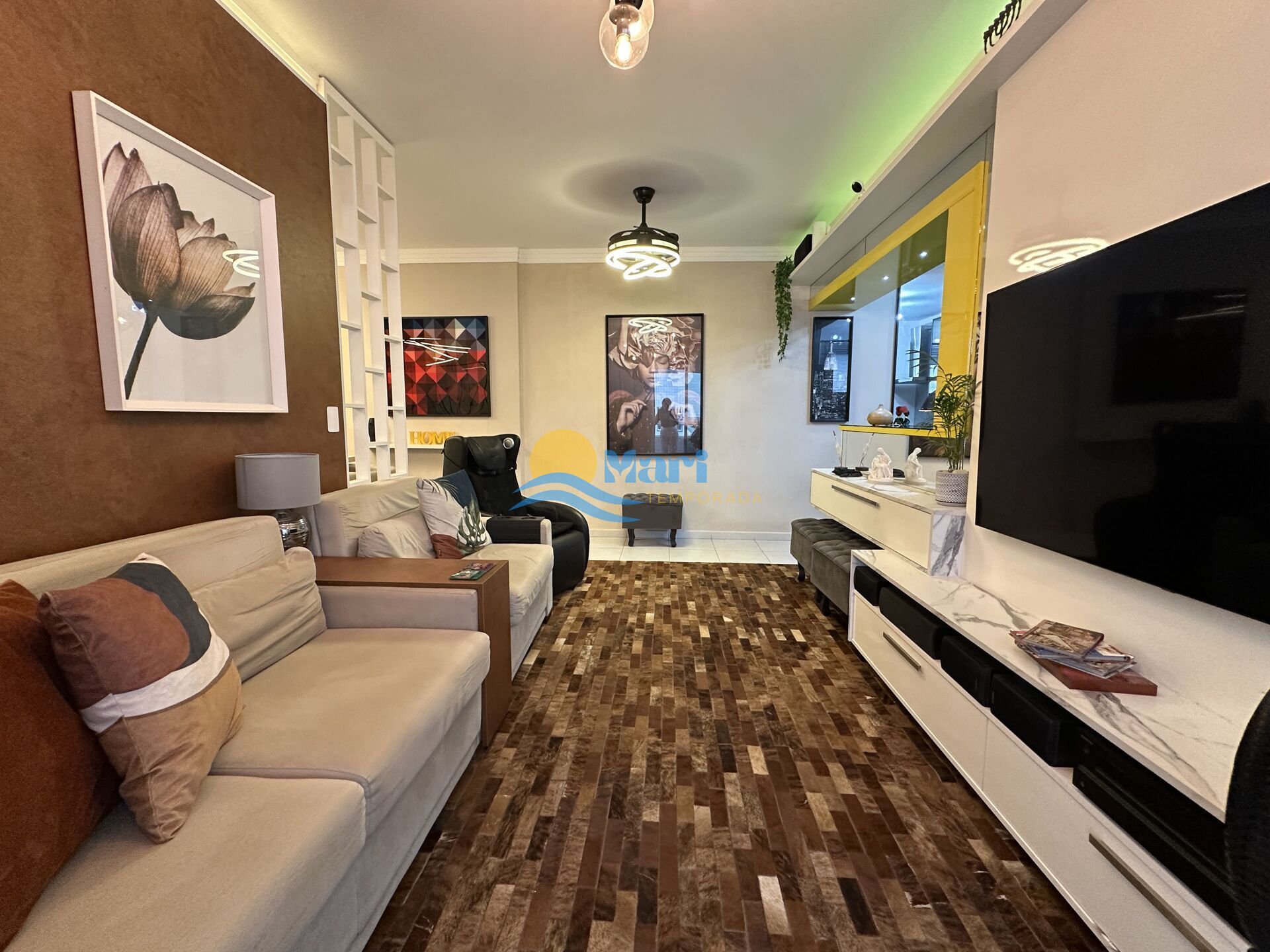 Apartamento à venda no bairro Guilhermina em Praia Grande, SP. 3 dormitórios (sendo 1 suíte), sala dois ambientes com sacada gourmet, cozinha planejada de alta qualidade, área de serviço, lavabo, banheiro social e duas vagas de garagem. Será vendido mobiliado.