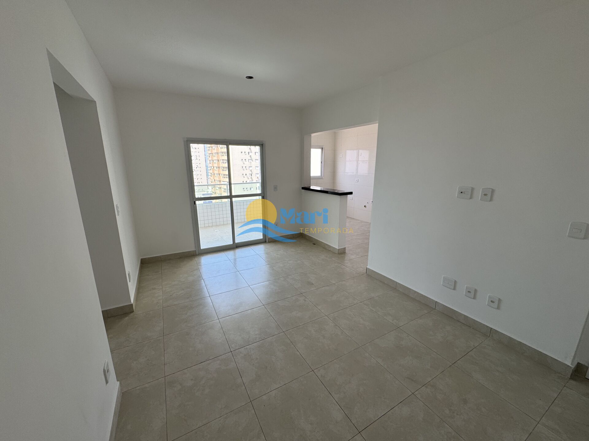 Apartamento à venda no bairro Aviação em Praia Grande, SP. 2 dormitórios sendo 1 suíte, sala dois ambientes com sacada, cozinha americana, área de serviço, banheiro social e duas vagas de garagem.