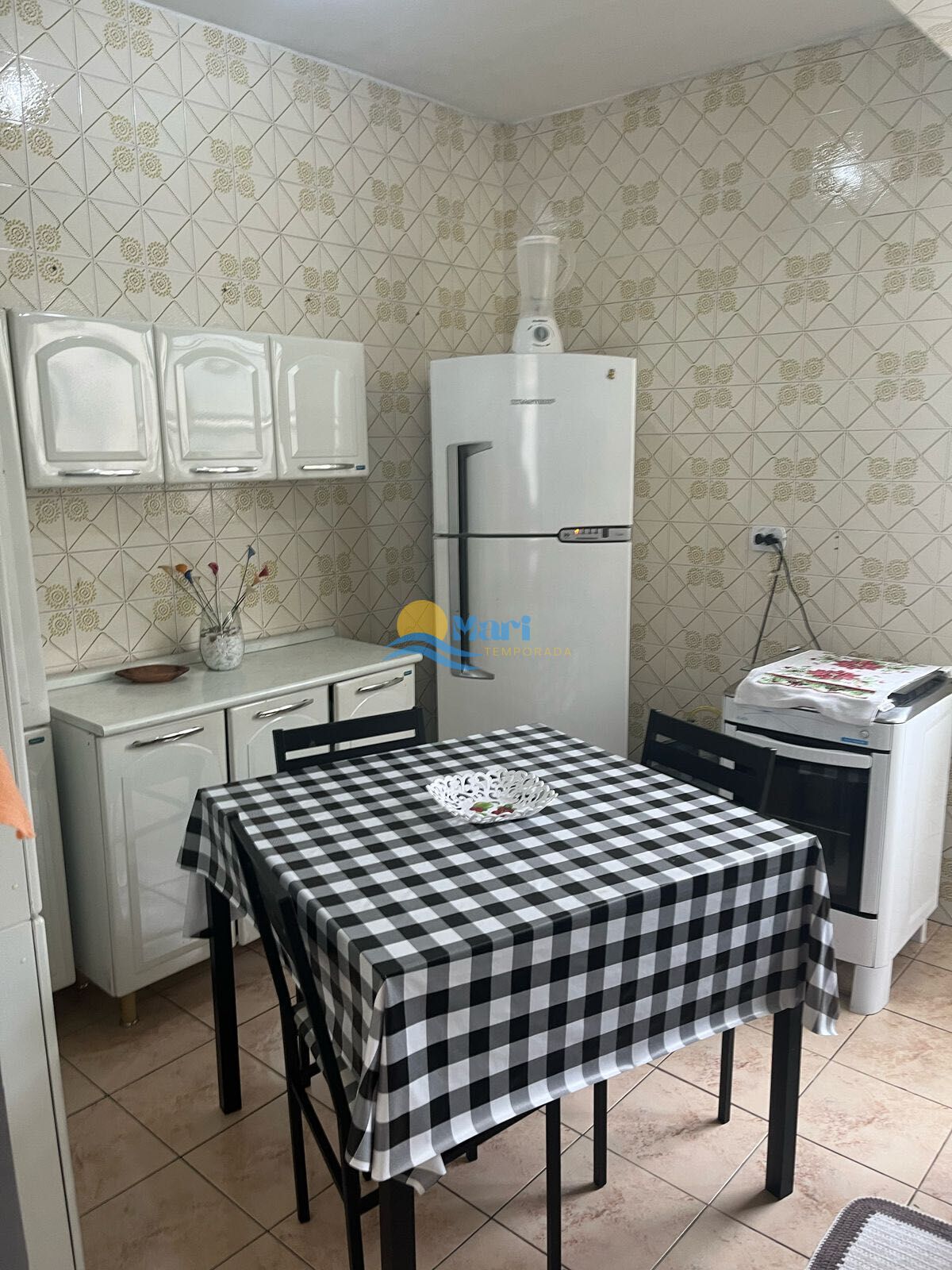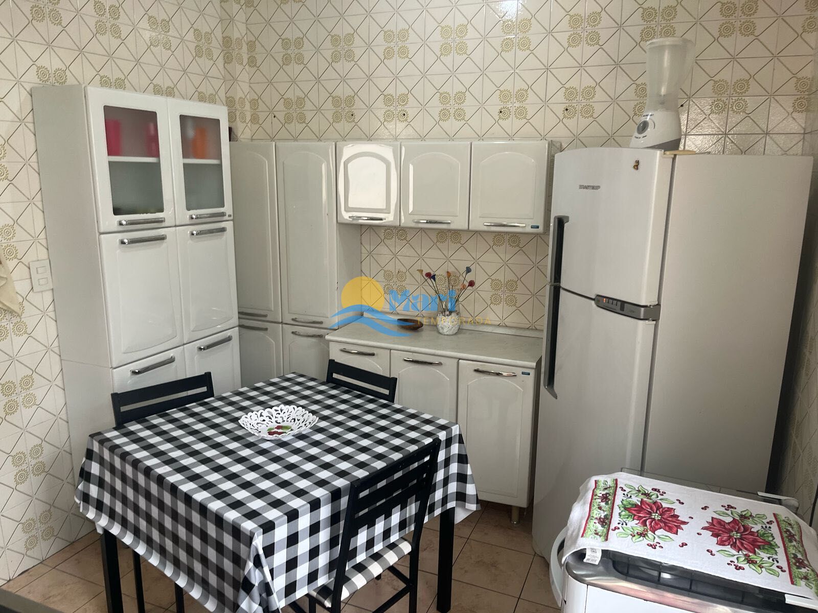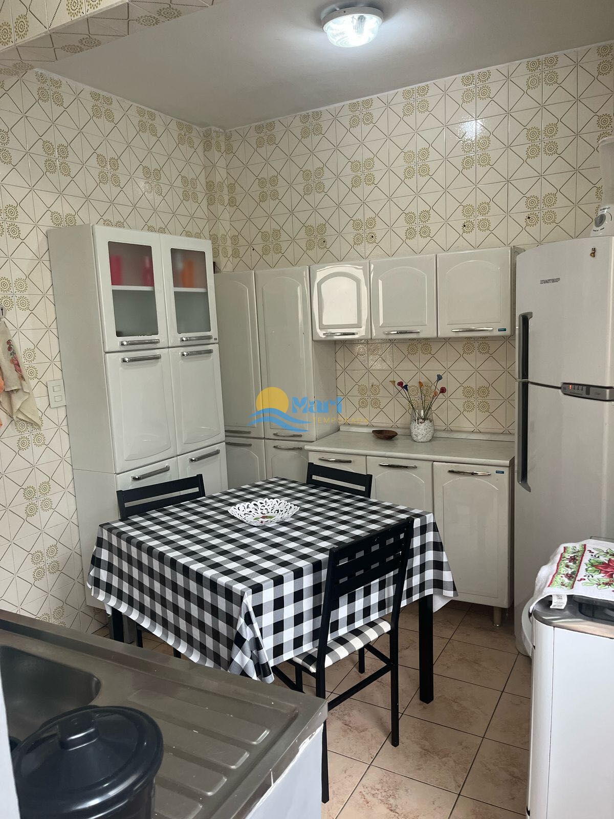 Kitnet à venda no bairro Canto do Forte em Praia Grande, SP sala integrada com o dormitorio, cozinha, área de serviço, banheiro social e uma vaga de garagem.
