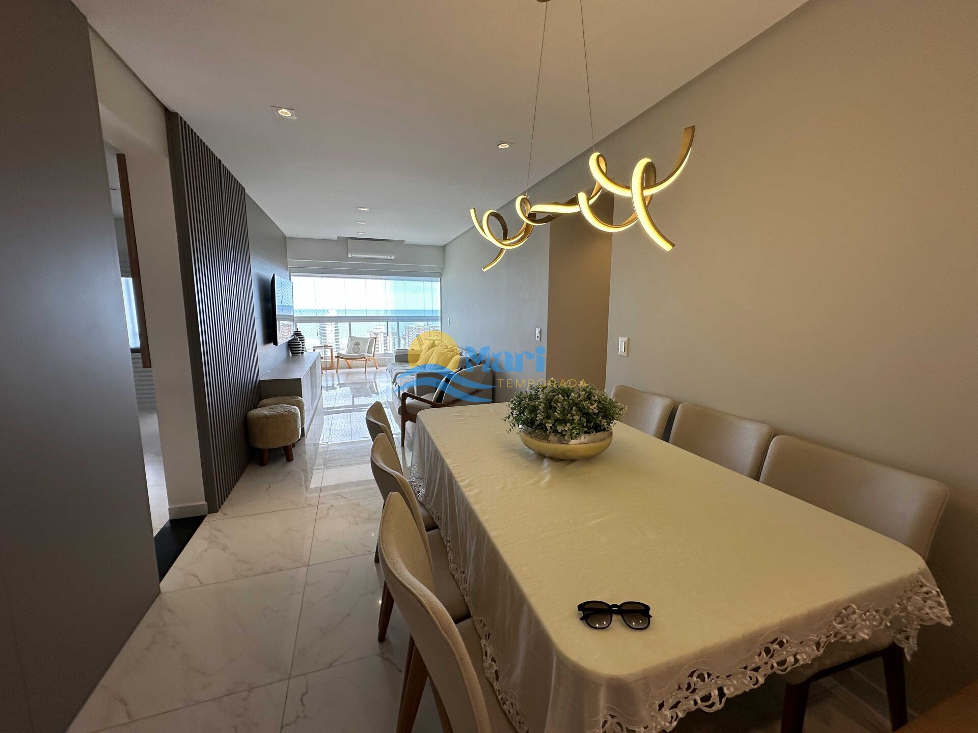 Apartamento vista mar à venda no bairro Guilhermina Praia Grande, SP. 3 suítes, sala dois ambientes com sacada envidraçada, cozinha planejada de alta qualidade, área de serviço, banheiro social e 3 vagas de garagem demarcadas. Fica mobiliado (retira TVs e máquina de lavar)