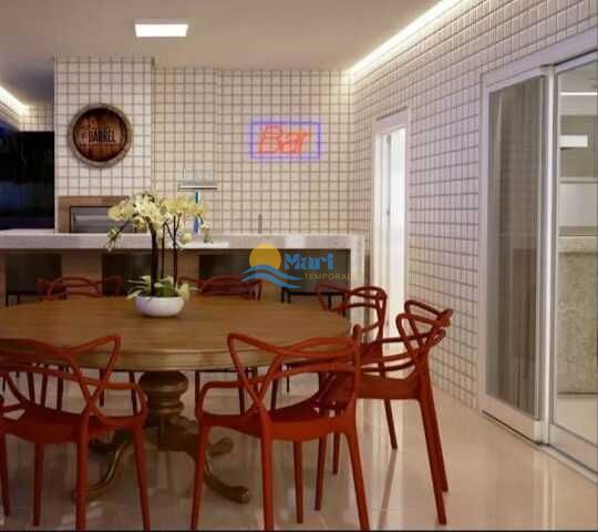 Apartamento à venda no bairro Aviação em Praia Grande, SP. 3 suítes, sala dois ambientes com sacada, cozinha, área de serviço, banheiro social e duas vagas de garagem.