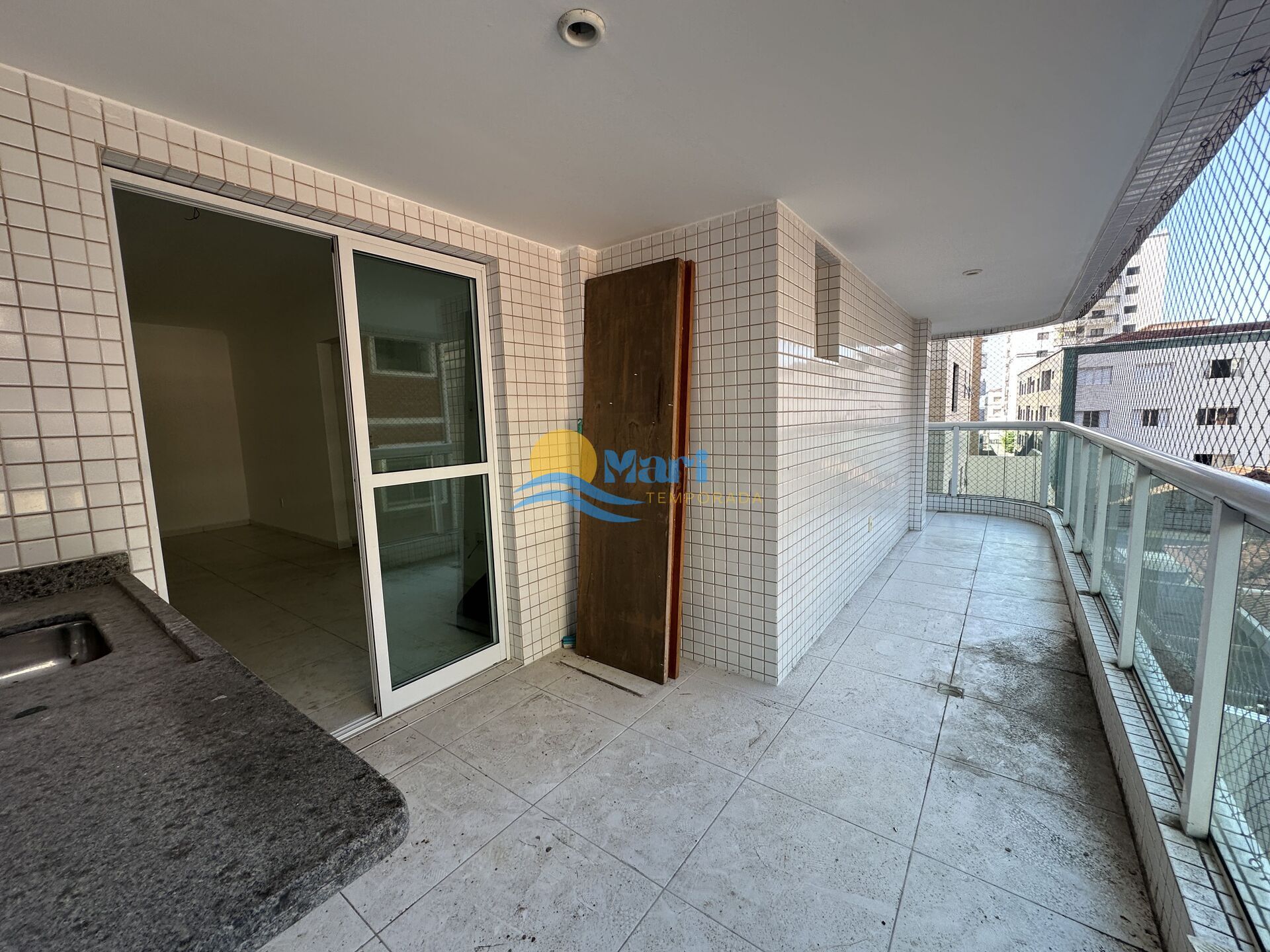 Apartamento à venda no bairro Tupi em Praia Grande, SP. 2 dormitórios (sendo 1 suíte), sala dois ambientes com sacada, cozinha, área de serviço, banheiro social e uma vaga de garagem.