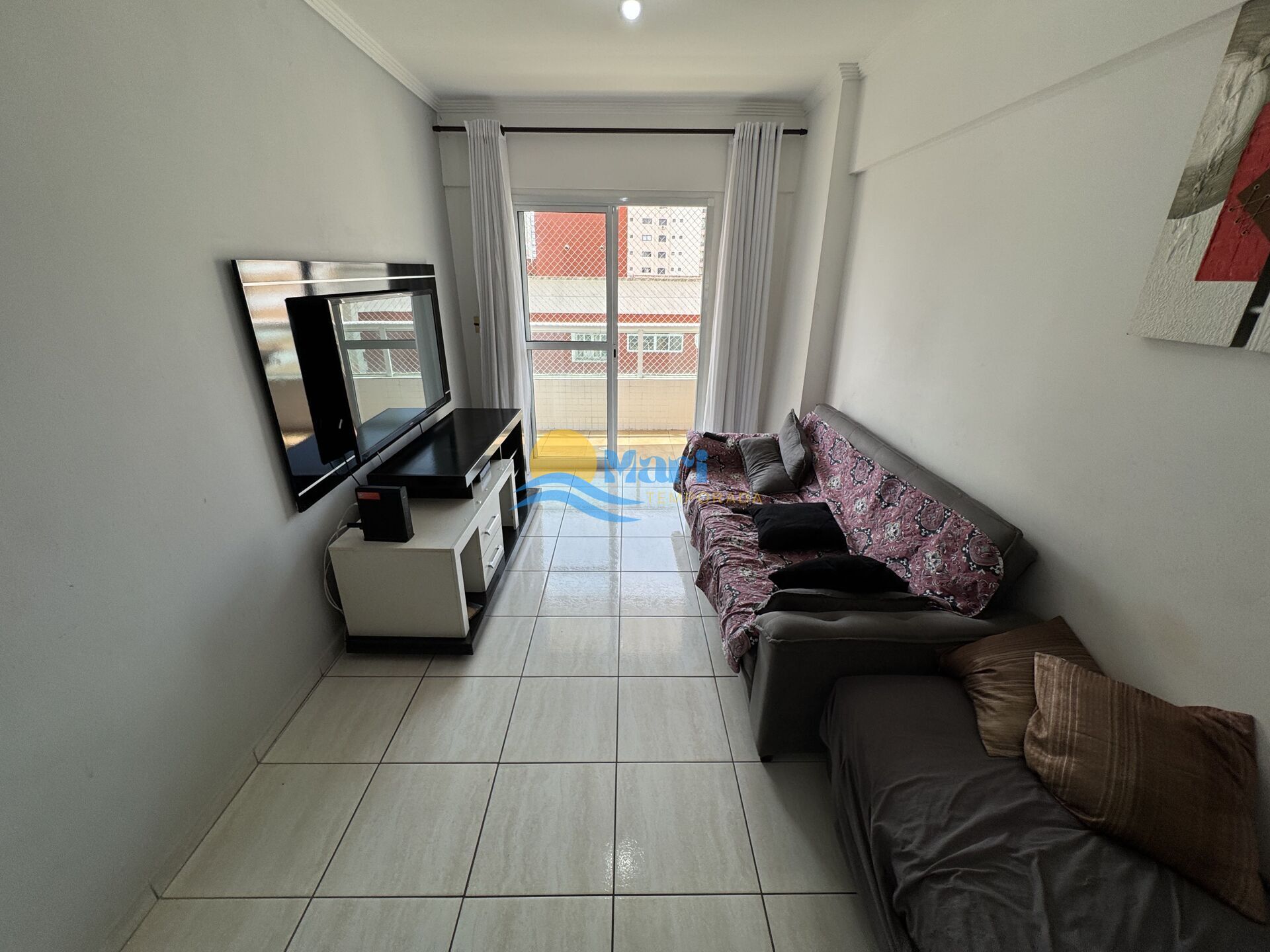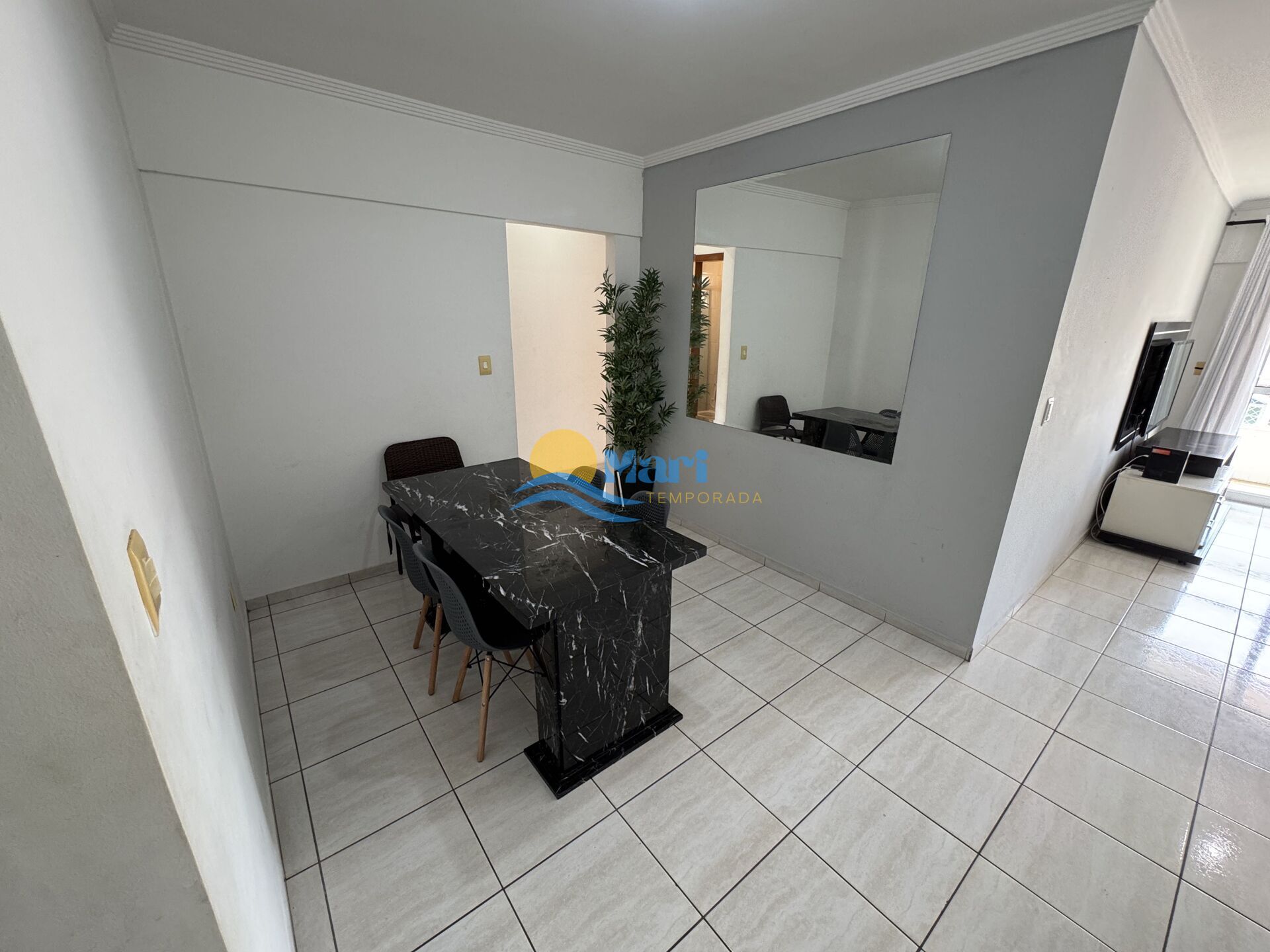 Apartamento à venda no bairro Tupi em Praia Grande, SP. 2 dormitórios (sendo 1 suíte), sala dois ambientes, cozinha, área de serviço, banheiro social e uma vaga de garagem.