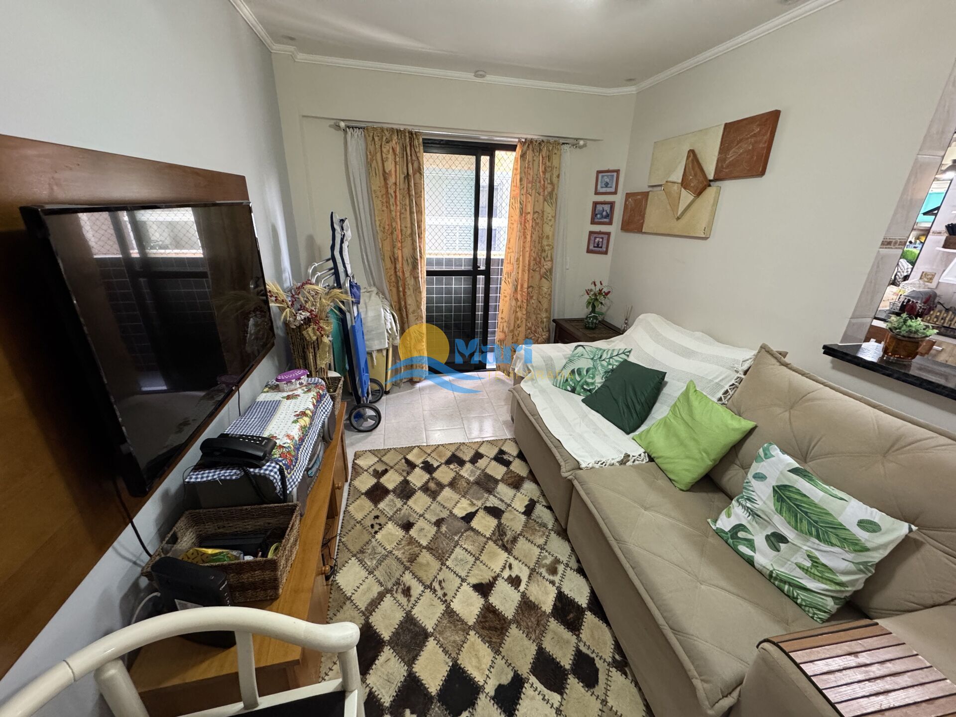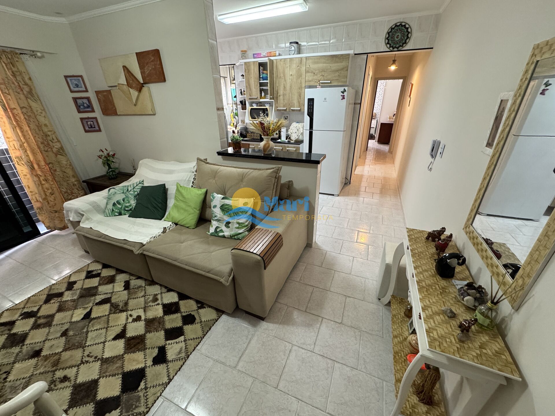 Apartamento à venda no bairro Caiçara em Praia Grande, SP. 2 dormitórios (sendo 1 suíte), sala dois ambientes com sacada, cozinha, área de serviço, banheiro social e uma vaga de garagem.