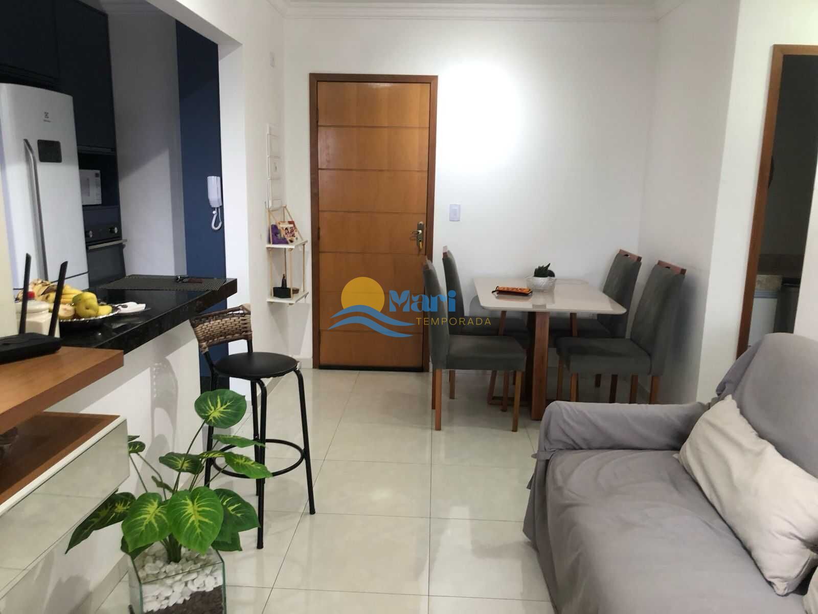 Apartamento à venda no bairro Aviação em Praia Grande, SP. 2 dormitórios sendo 1 suíte, sala dois ambientes com sacada envidraçada, cozinha planejada, área de serviço, banheiro social e uma vaga de garagem. Será vendido completamente mobiliado.
