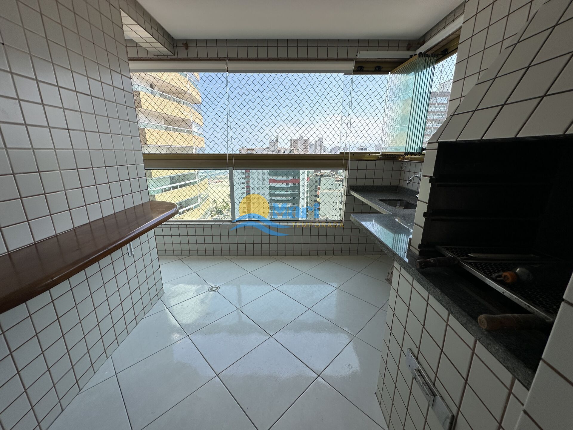 Apartamento à venda no bairro Aviação em Praia Grande, SP. 1 dormitório (sendo 1 suíte), sala dois ambientes, varanda com vista para o mar e churrasqueira a carvão, cozinha, área de serviço, banheiro social e 1 vaga de garagem.