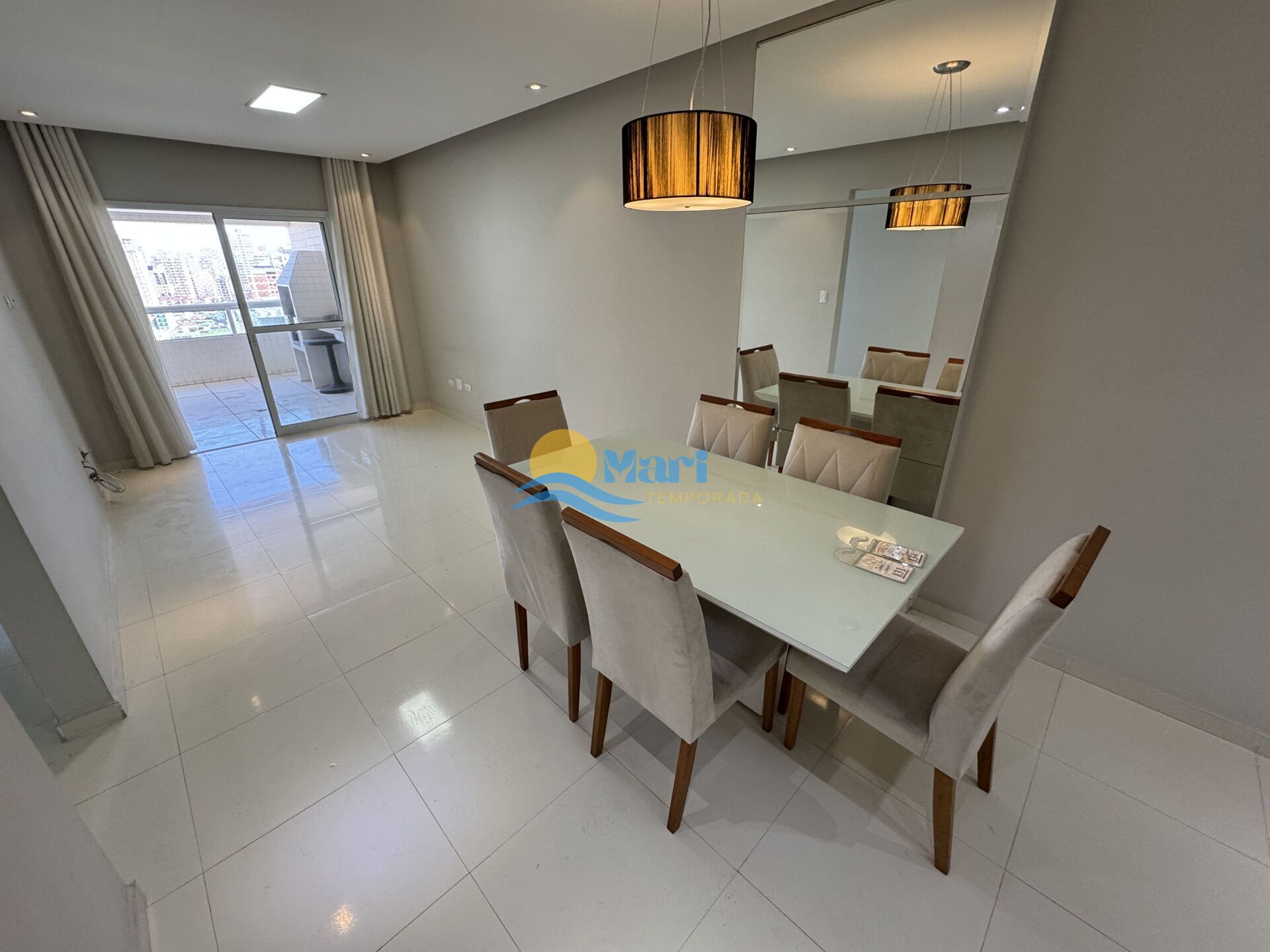 Apartamento à venda no bairro Guilhermina em Praia Grande, SP. 3 dormitórios (sendo 3 suítes), dependência de empregada, sala 2 ambientes, sacada, cozinha, área de serviço, lavabo e 2 vagas de garagem. Mobiliado