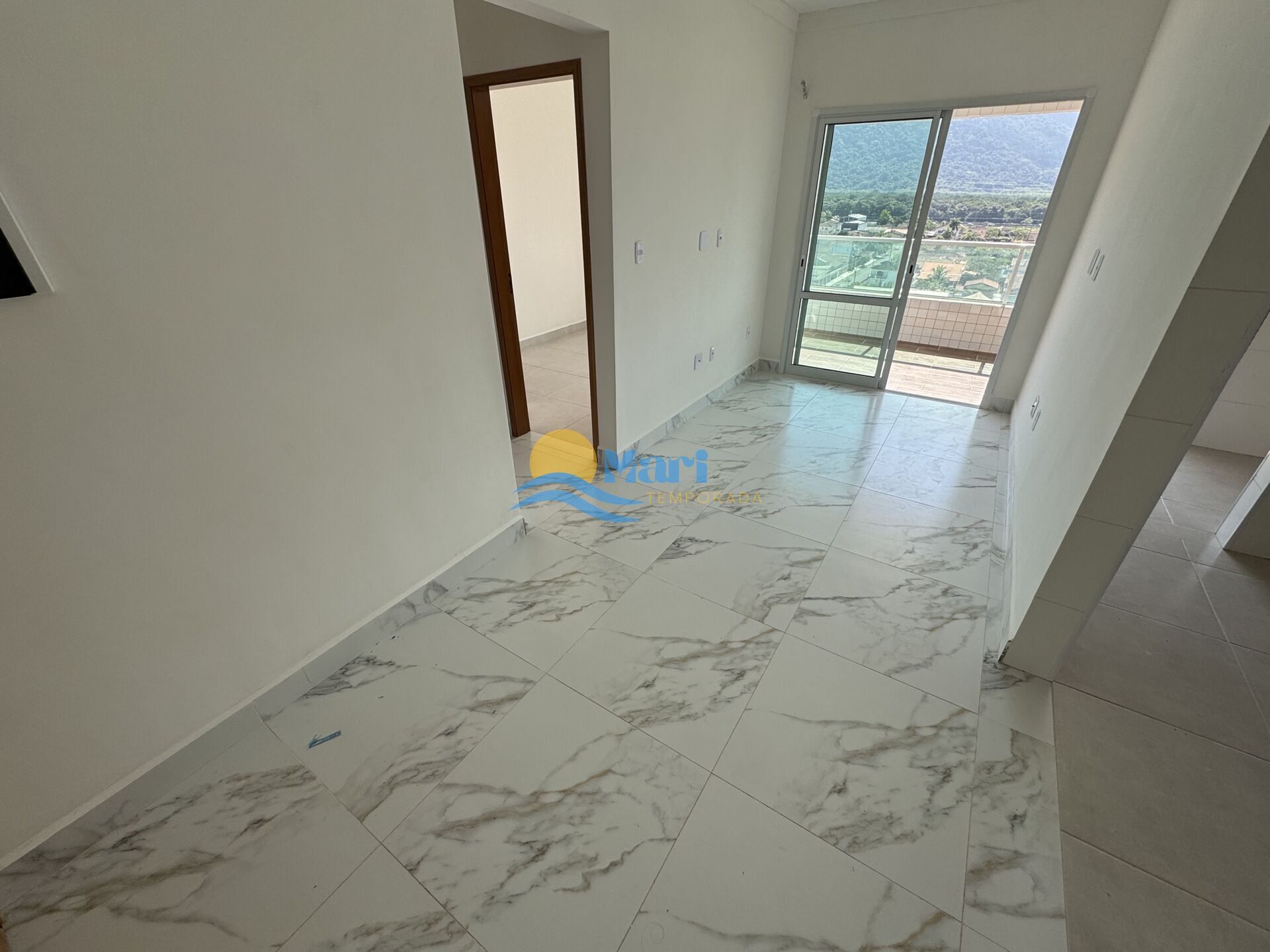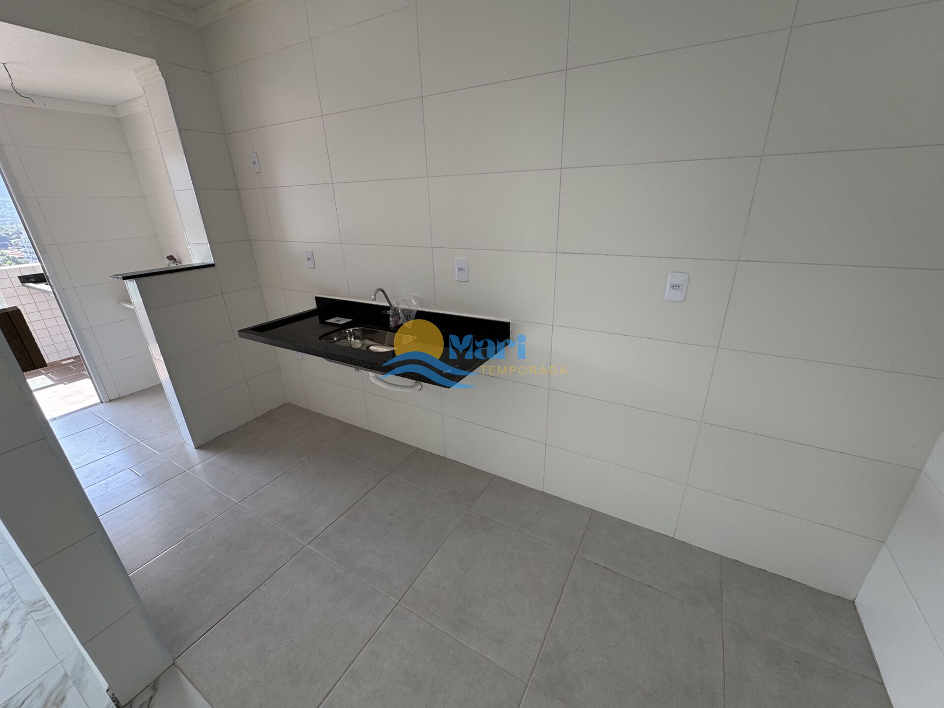 Apartamento à venda no bairro Florida em Praia Grande, SP. 1 suíte, sala dois ambientes com sacada, cozinha, área de serviço, banheiro social e uma vaga de garagem.