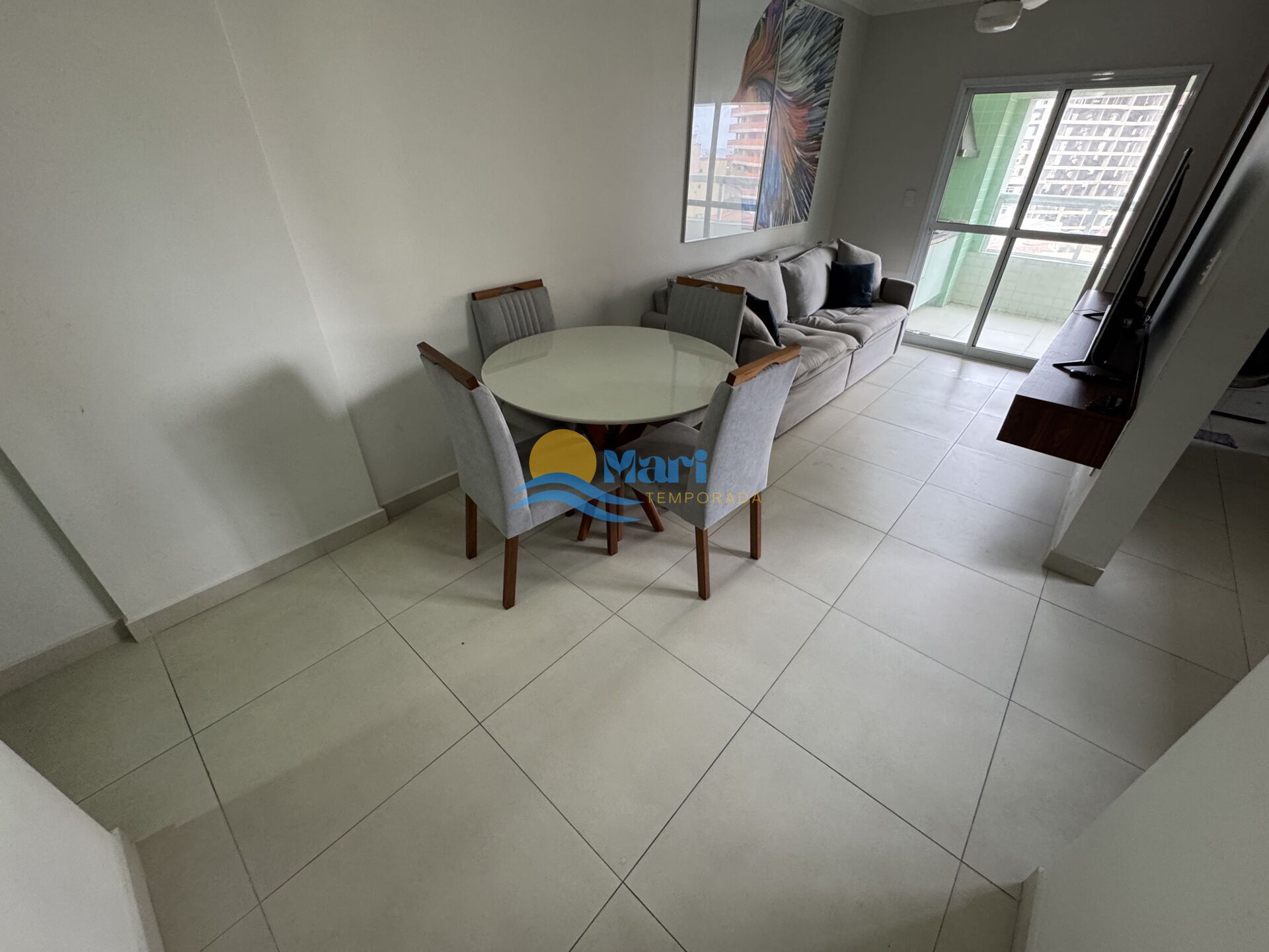 Apartamento à venda no bairro Caiçara em Praia Grande, SP. 2 suítes, sala 2 ambientes com sacada, cozinha planejada, área de serviço, lavabo, banheiro social, e 1 vaga de garagem.