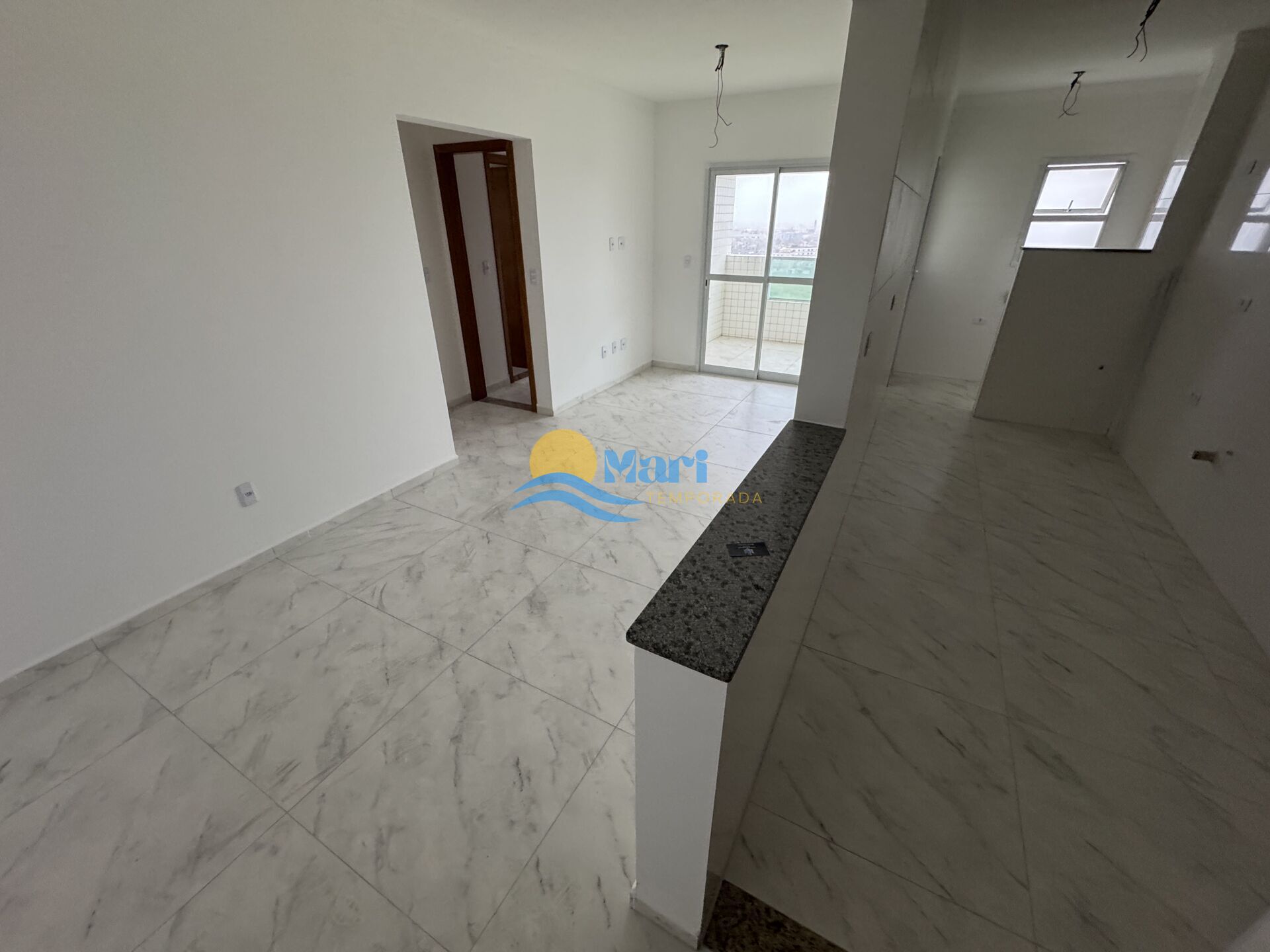 Apartamento à venda no bairro Mirim em Praia Grande, SP. 2 dormitórios (sendo 1 suíte), sala dois ambientes com sacada, cozinha, área de serviço, área técnica, banheiro social e duas vagas de garagem.