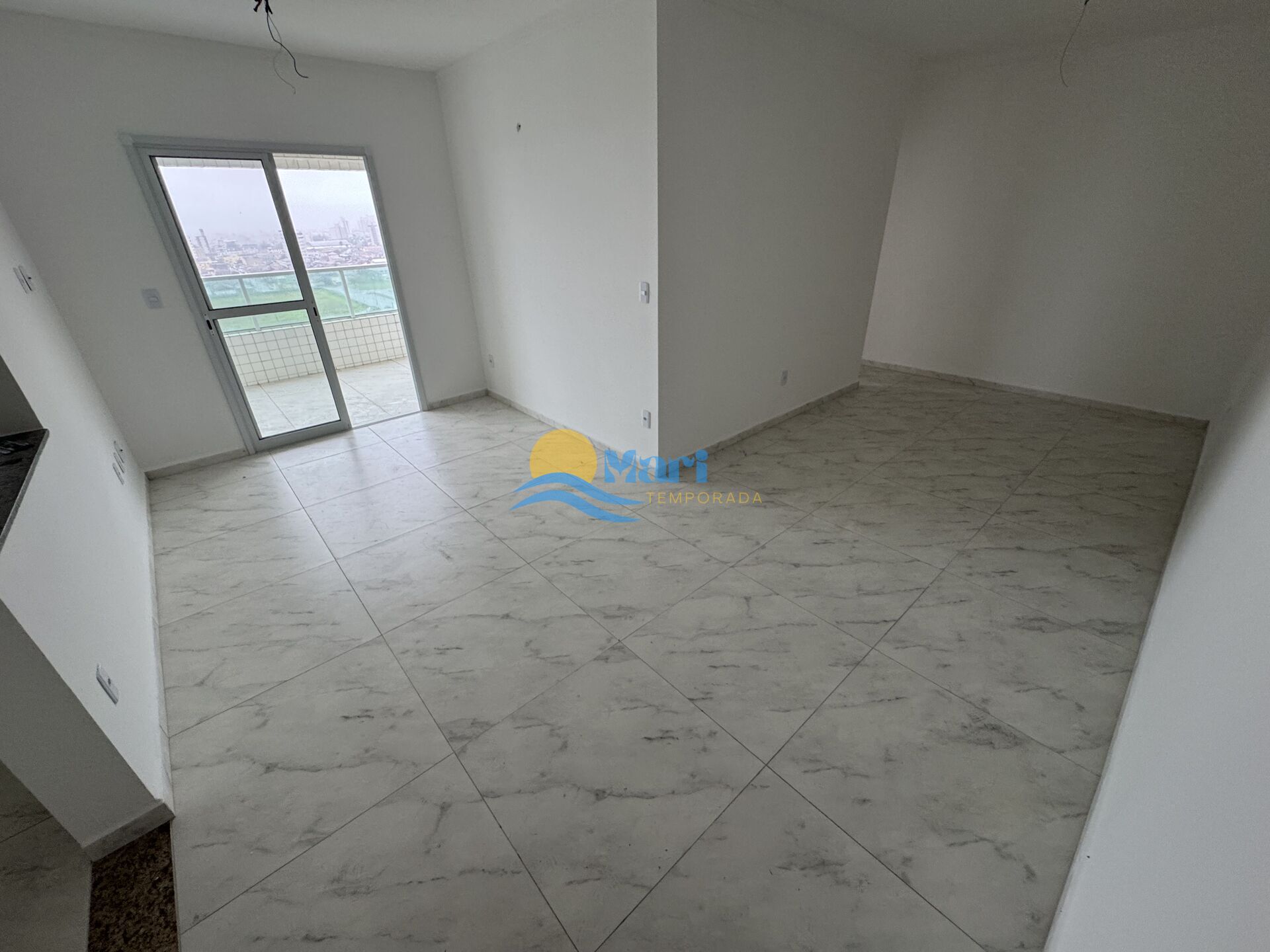 Apartamento à venda no bairro Mirim em Praia Grande, SP. 2 dormitórios (sendo 1 suíte), sala dois ambientes com sacada, cozinha, área de serviço, área técnica, banheiro social e duas vagas de garagem.