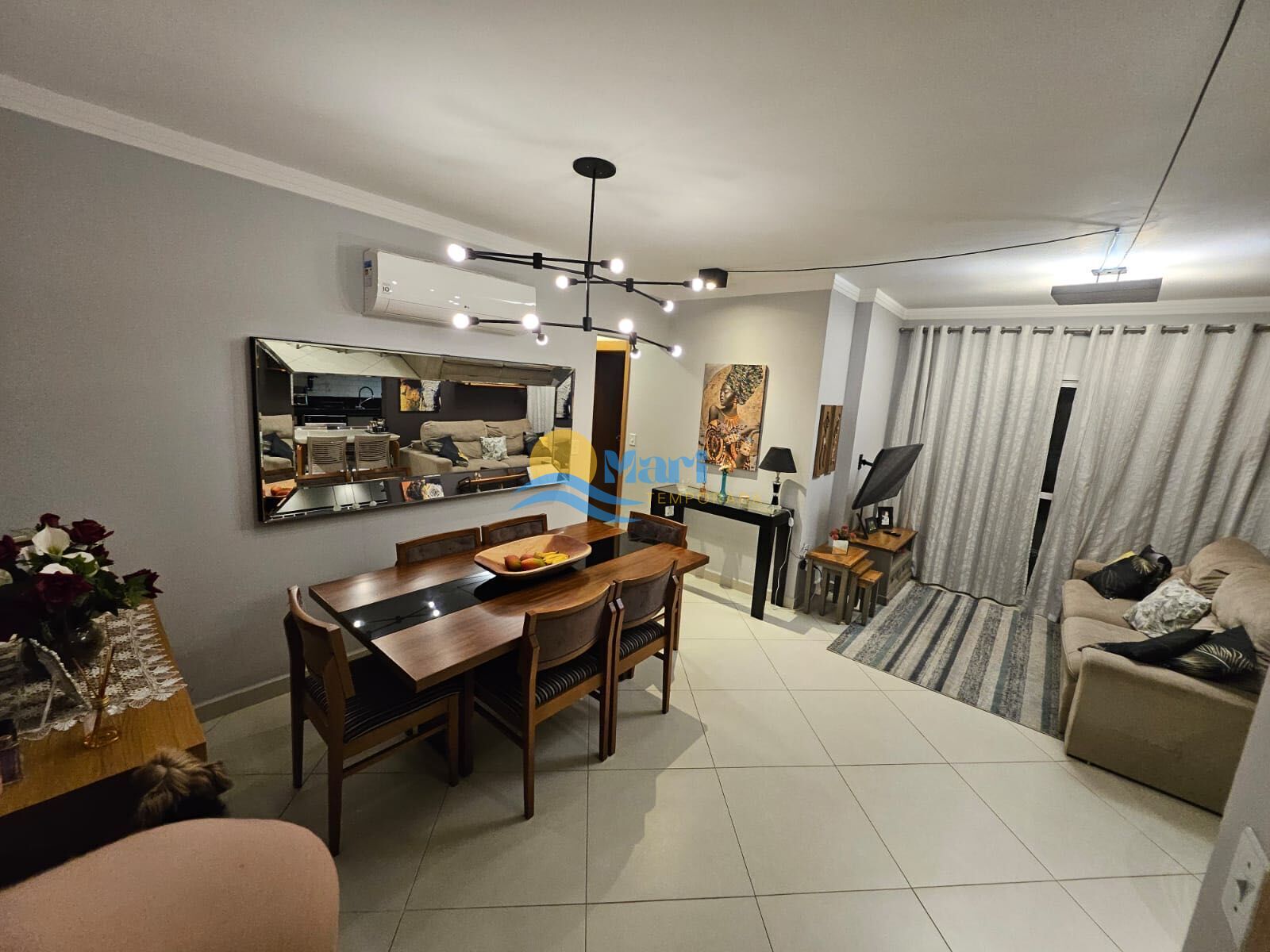 Apartamento à venda no bairro Boqueirão em Praia Grande, SP. 3 dormitórios (sendo 2 suítes), sala dois ambientes com sacada, cozinha com planejados, área de serviço, área técnica, banheiro social e 2 vagas de garagem. Será vendido mobiliado.