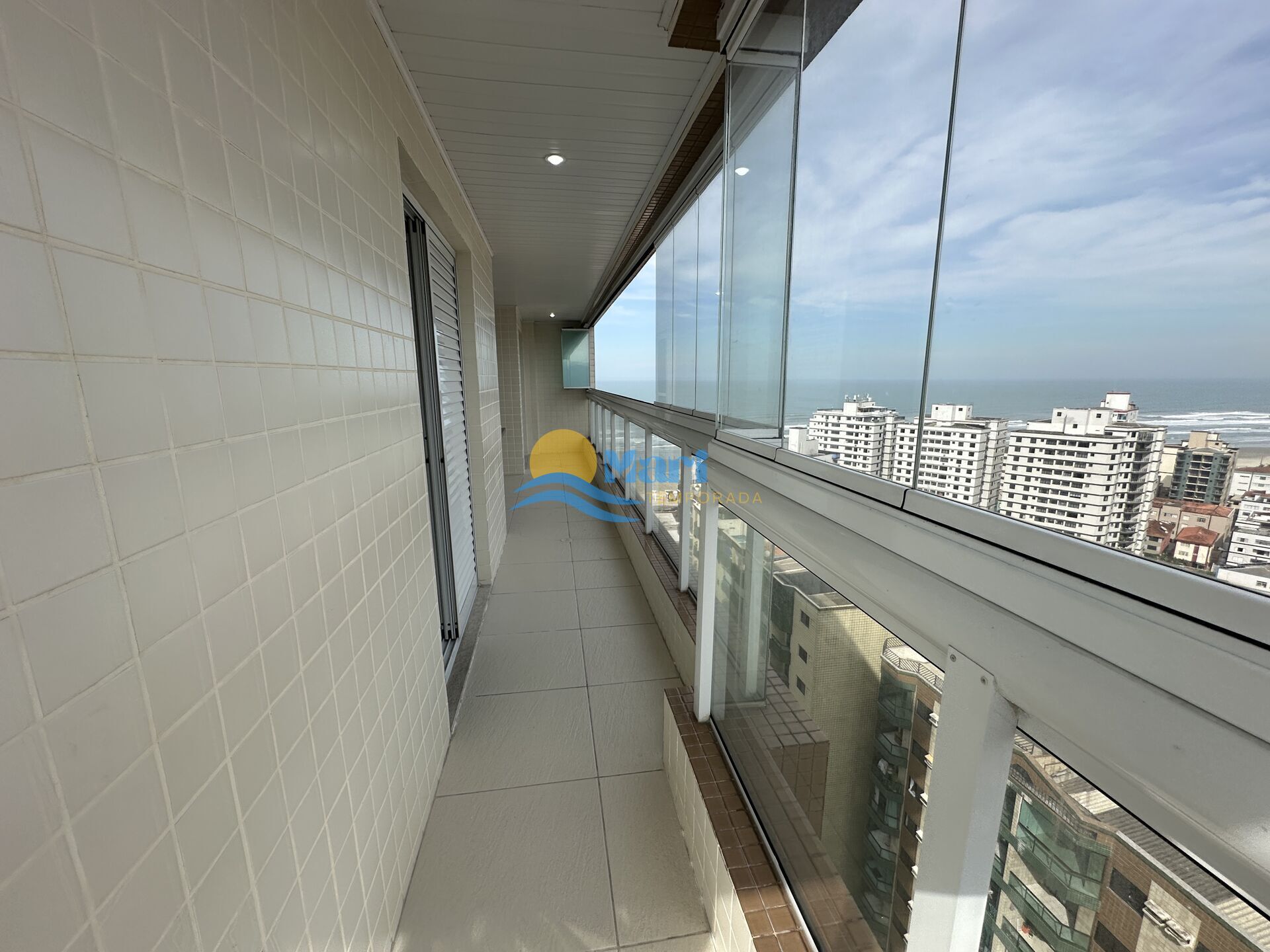 Apartamento à venda no bairro Vila Tupi em Praia Grande, SP. 2 dormitórios sendo 1 suíte, sala dois ambientes com sacada envidraçada, cozinha, área de serviço, banheiro social e duas vagas de garagem.