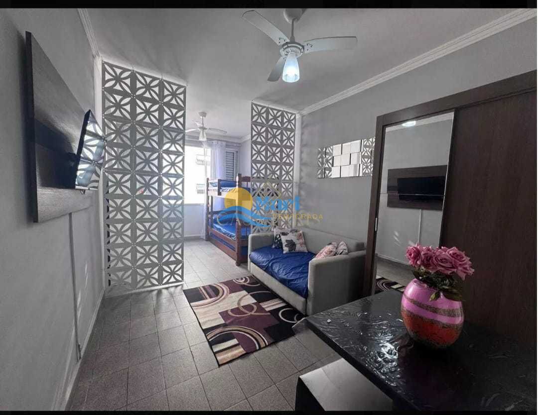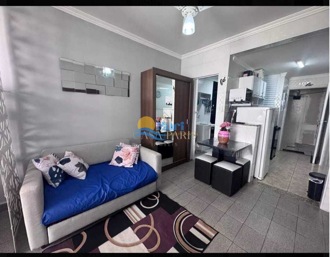 kitnet a venda no bairro Guilhermina em Praia Grande, SP. 1 dormitório, sala, cozinha, banheiro social e uma vaga de garagem.