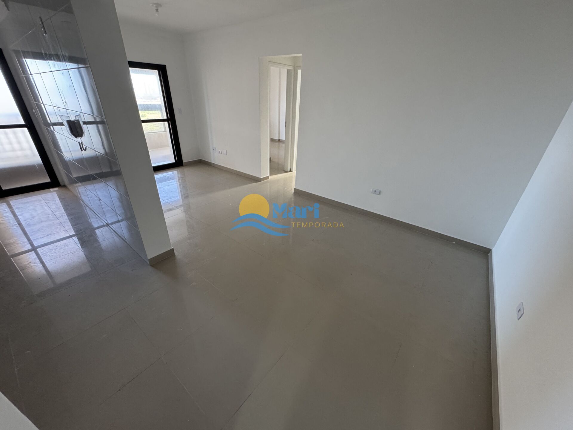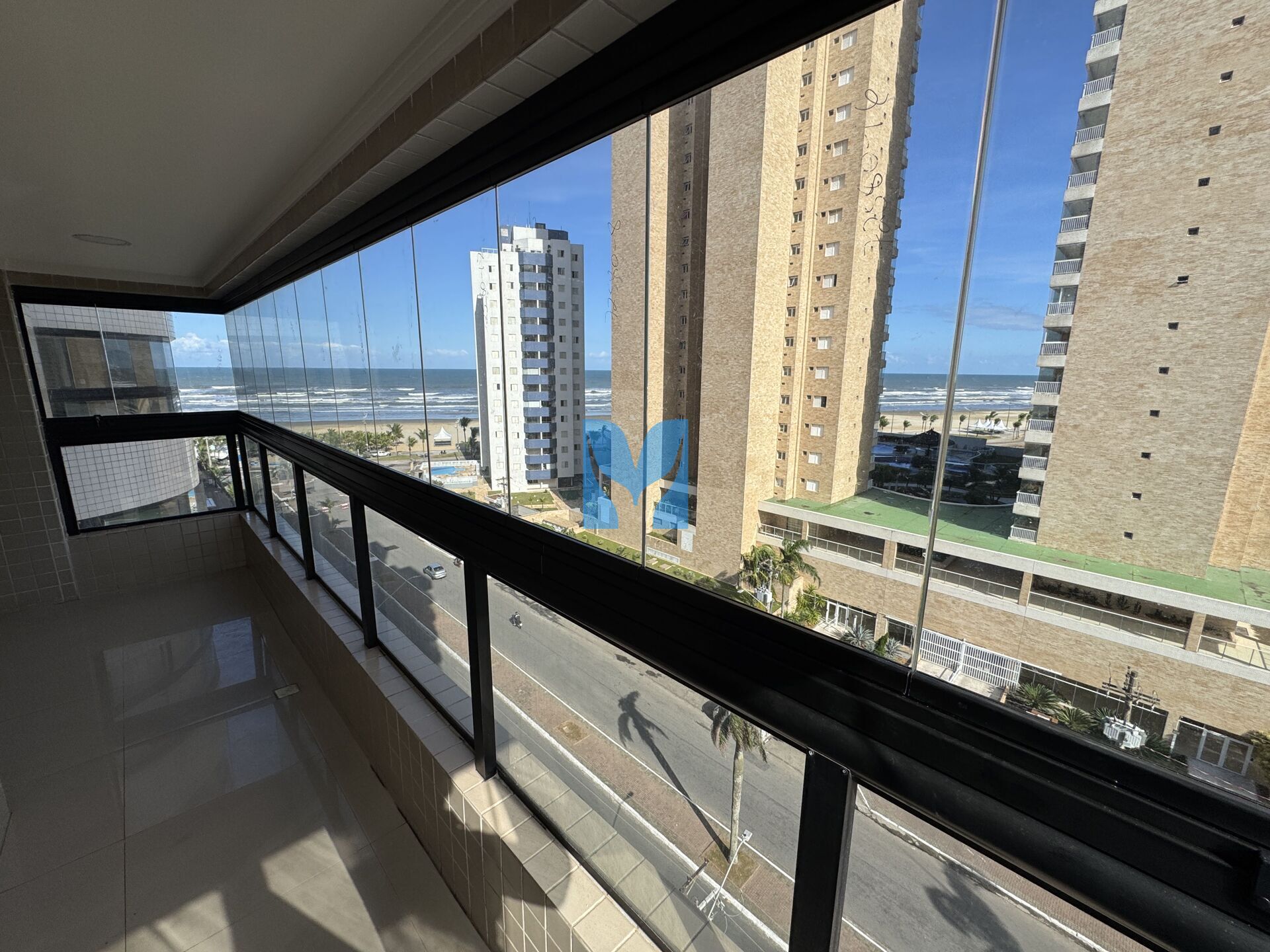 Apartamento à venda no bairro Mirim em Praia Grande, SP. 2 dormitórios (sendo 1 suíte), sala dois ambientes com sacada envidraçada, cozinha, área de serviço, área técnica, banheiro social e uma vaga de garagem
