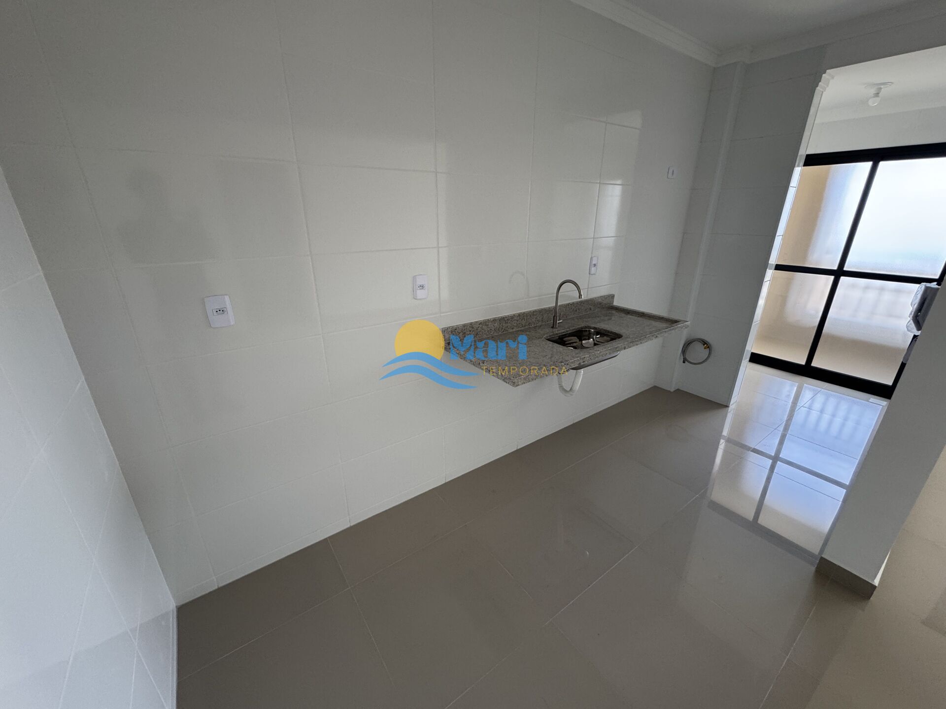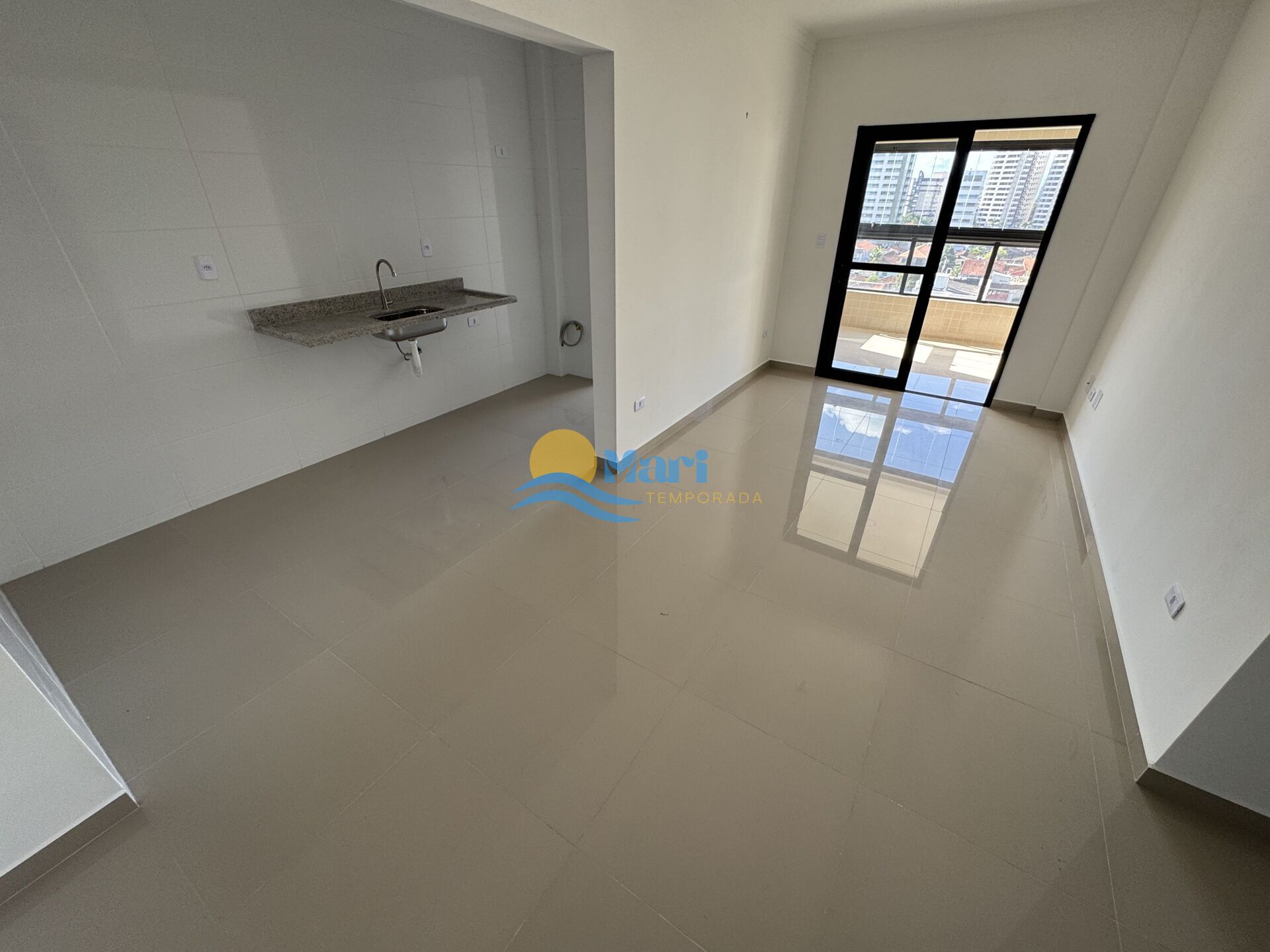 Apartamento à venda no bairro Mirim em Praia Grande, SP. 2 dormitórios (sendo 1 suíte), sala dois ambientes com sacada envidraçada, cozinha, área de serviço, área técnica, banheiro social e uma vaga de garagem.