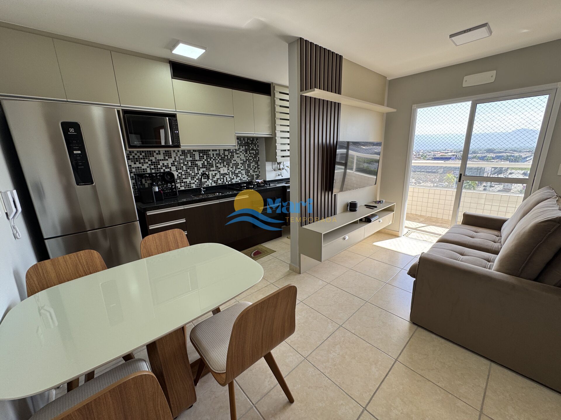 Apartamento à venda no bairro Guilhermina em Praia Grande, SP. 2 dormitórios (sendo 1 suíte), sala dois ambientes com sacada, cozinha com planejados de alta qualidade, área de serviço, banheiro social e uma vaga de garagem. Será vendido mobiliado.