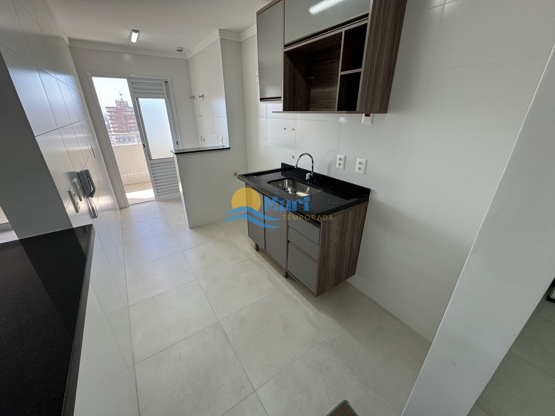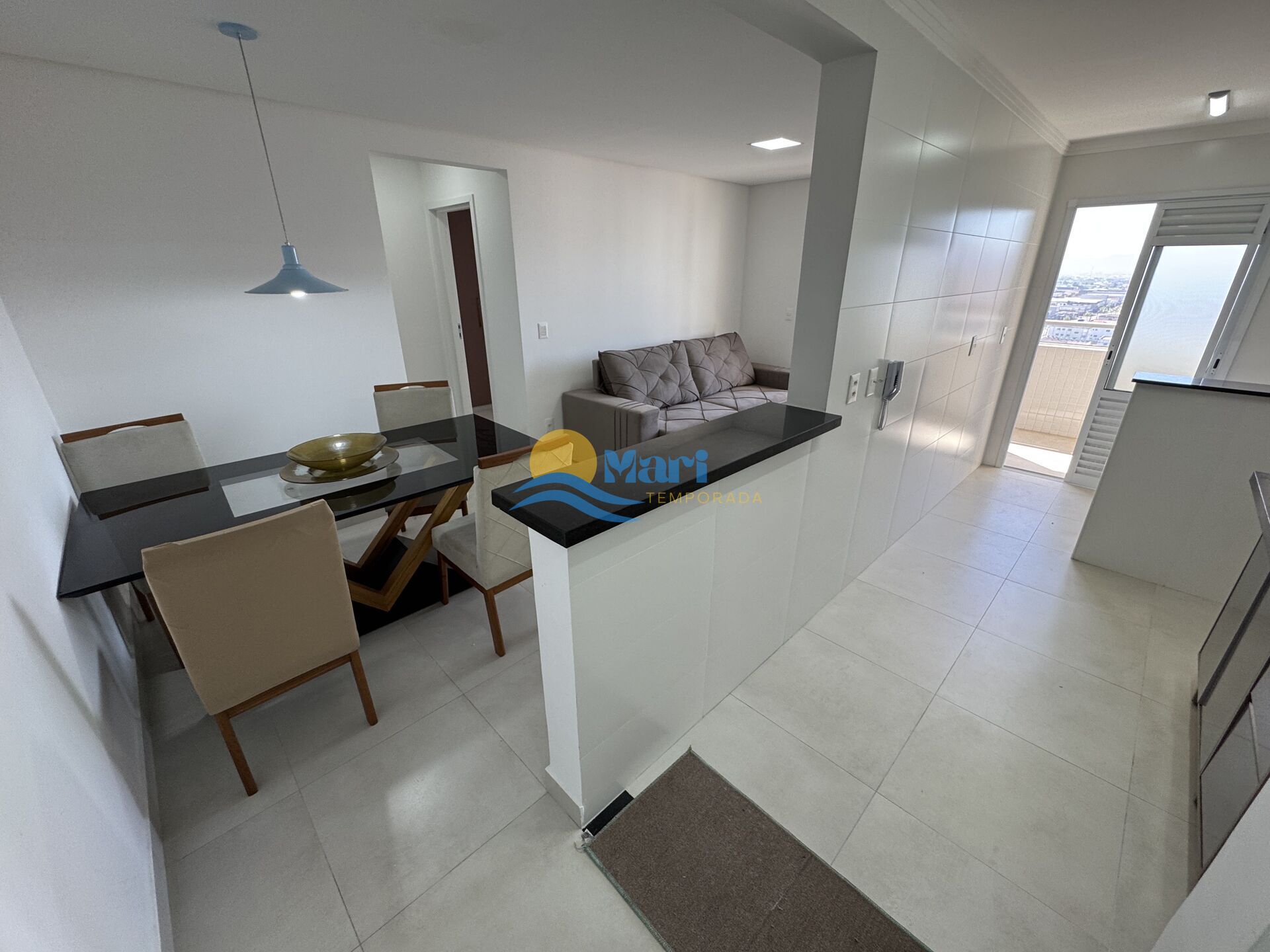 Apartamento à venda no bairro Tupi em Praia Grande, SP. 1 suíte, sala dois ambientes com sacada, cozinha com planejados de alta qualidade, área de serviço, banheiro social e uma vaga de garagem. Será vendido mobiliado.