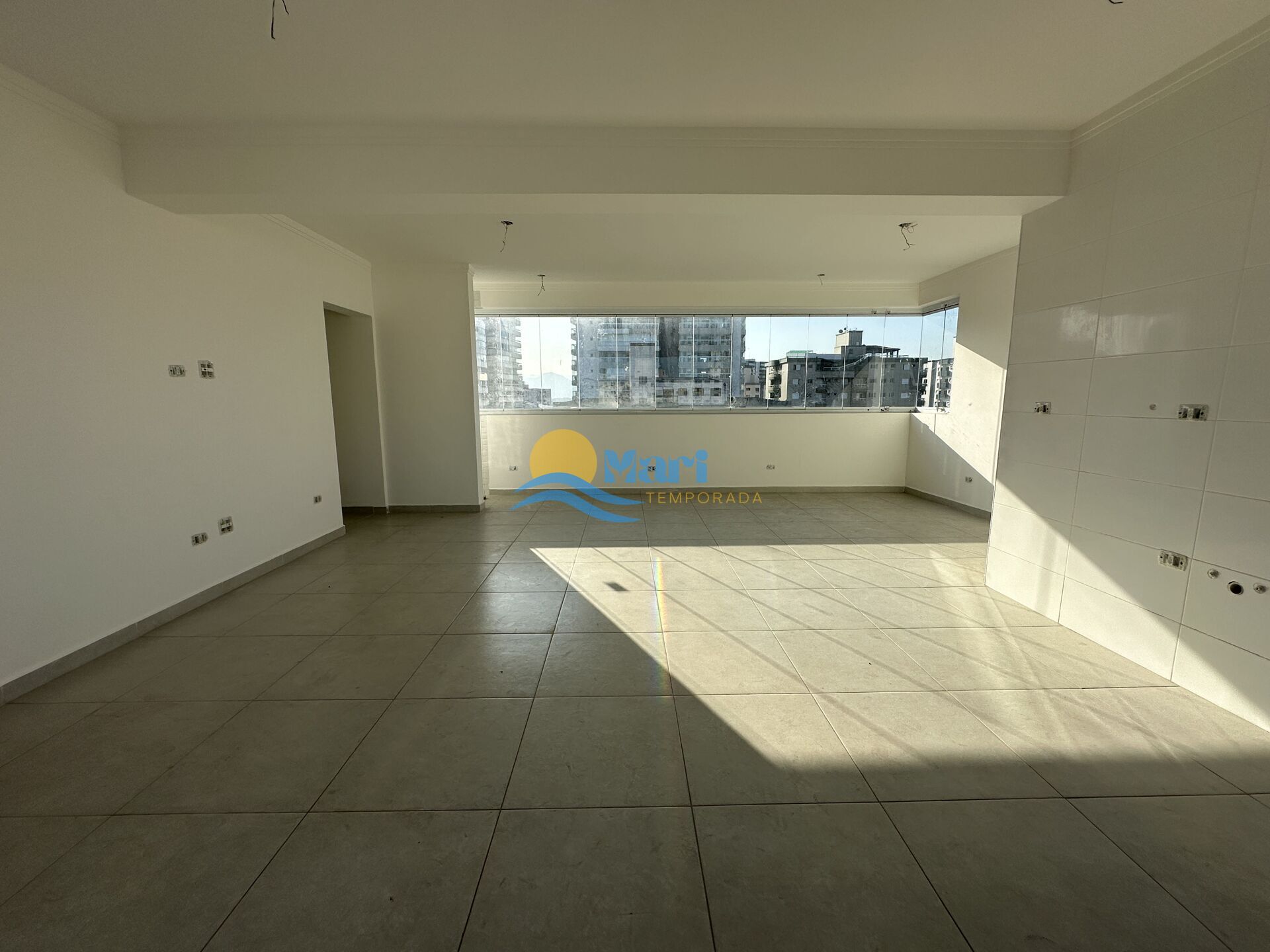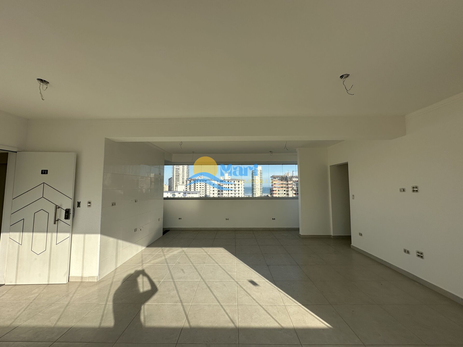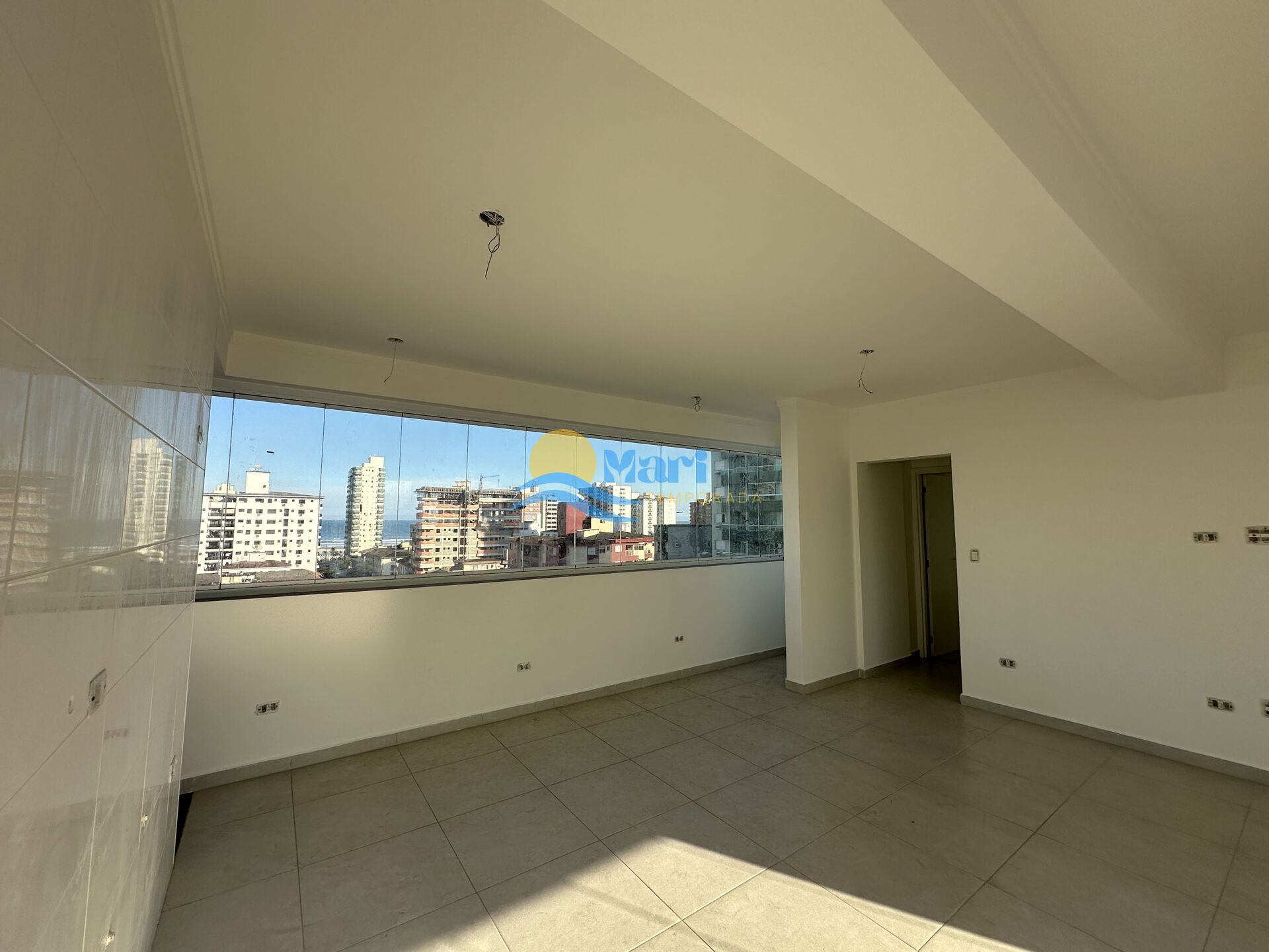 Apartamento vista mar à venda no bairro Guilhermina, em Praia Grande, SP. 2 dormitórios (sendo 1 suíte), sala com sacada envidraçada e integrada, cozinha, banheiro social, área de serviço e 1 vaga de garagem.