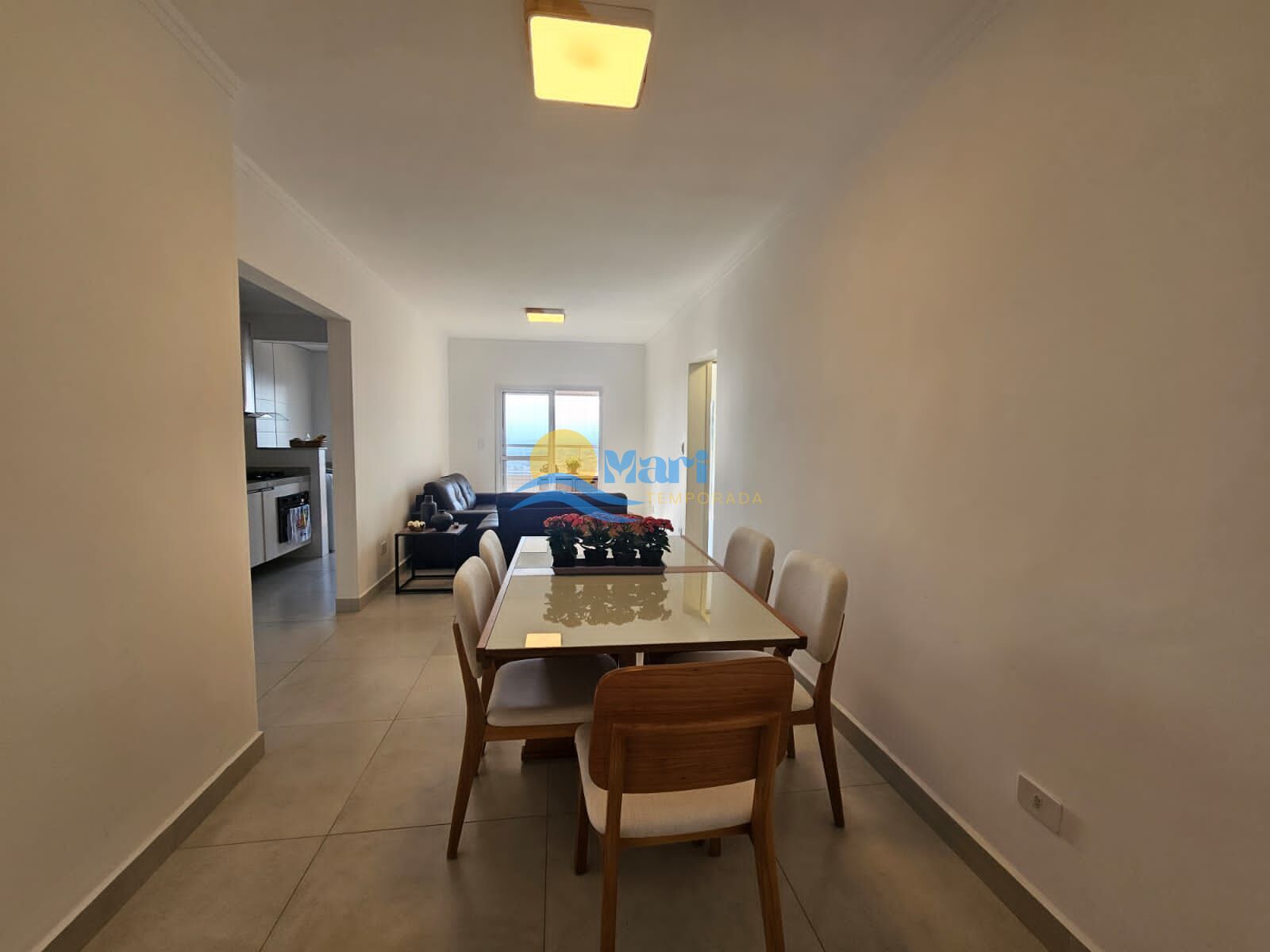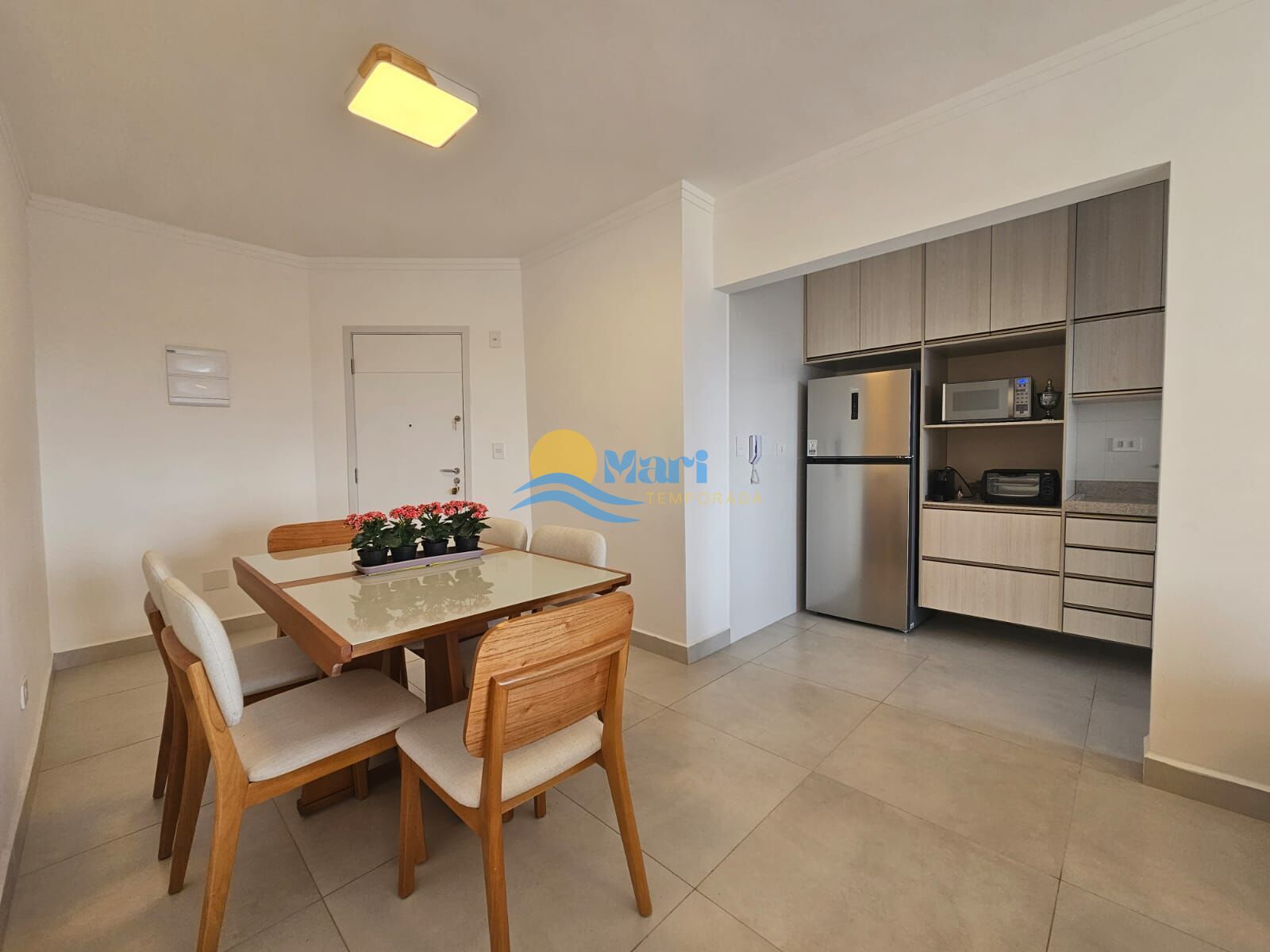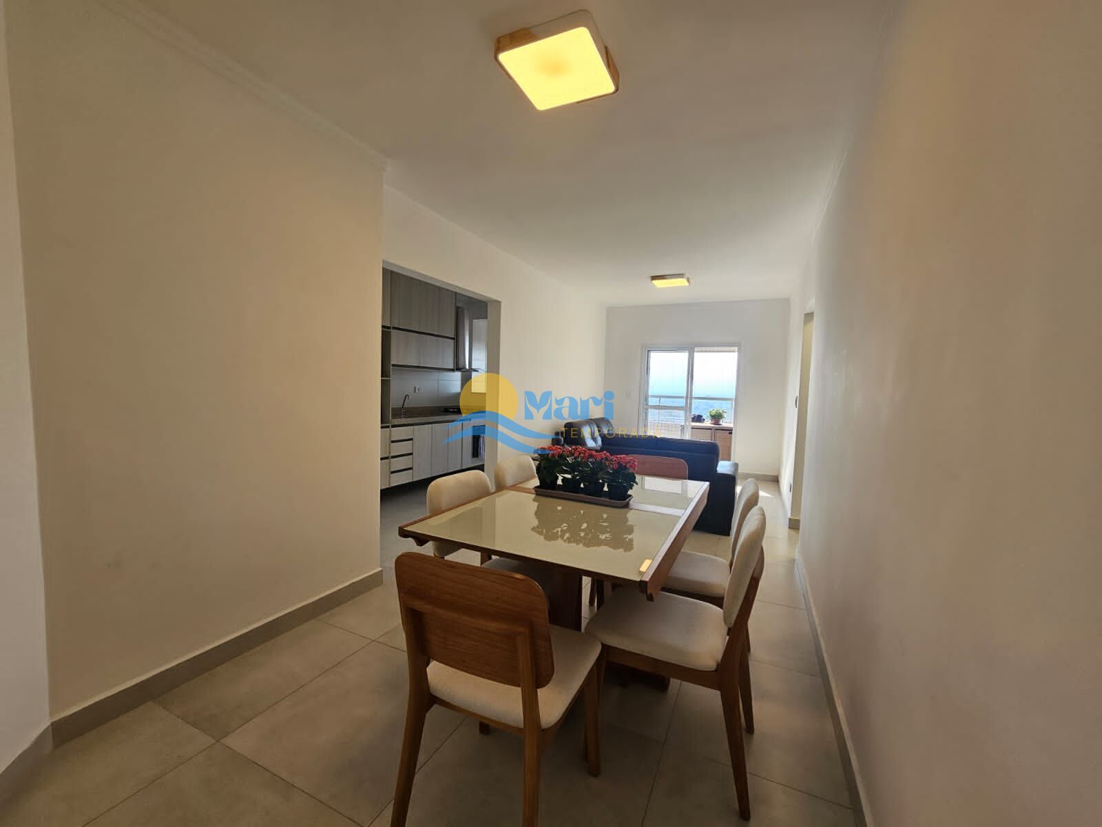 Apartamento à venda no bairro Tupi em Praia Grande, SP. 2 dormitórios sendo 2 suítes, sala dois ambientes com sacada envidraçada, cozinha planejada, área de serviço, banheiro social e uma vaga de garagem.