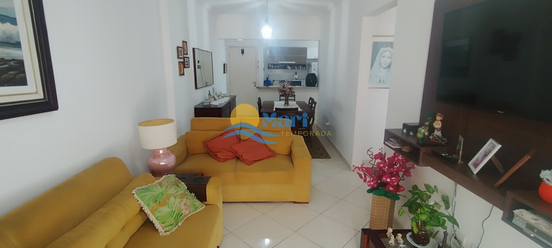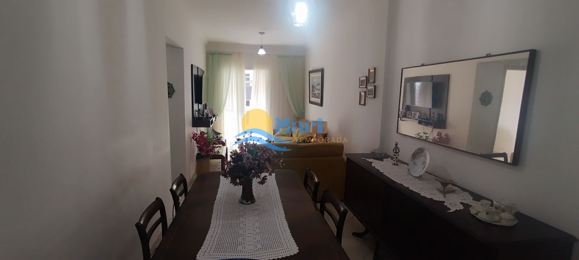 Apartamento à venda no bairro Caiçara em Praia Grande, SP. 2 dormitórios sendo 1 suíte, sala dois ambientes com sacada envidraçada, cozinha planejada, área de serviço, banheiro social e uma vaga de garagem.