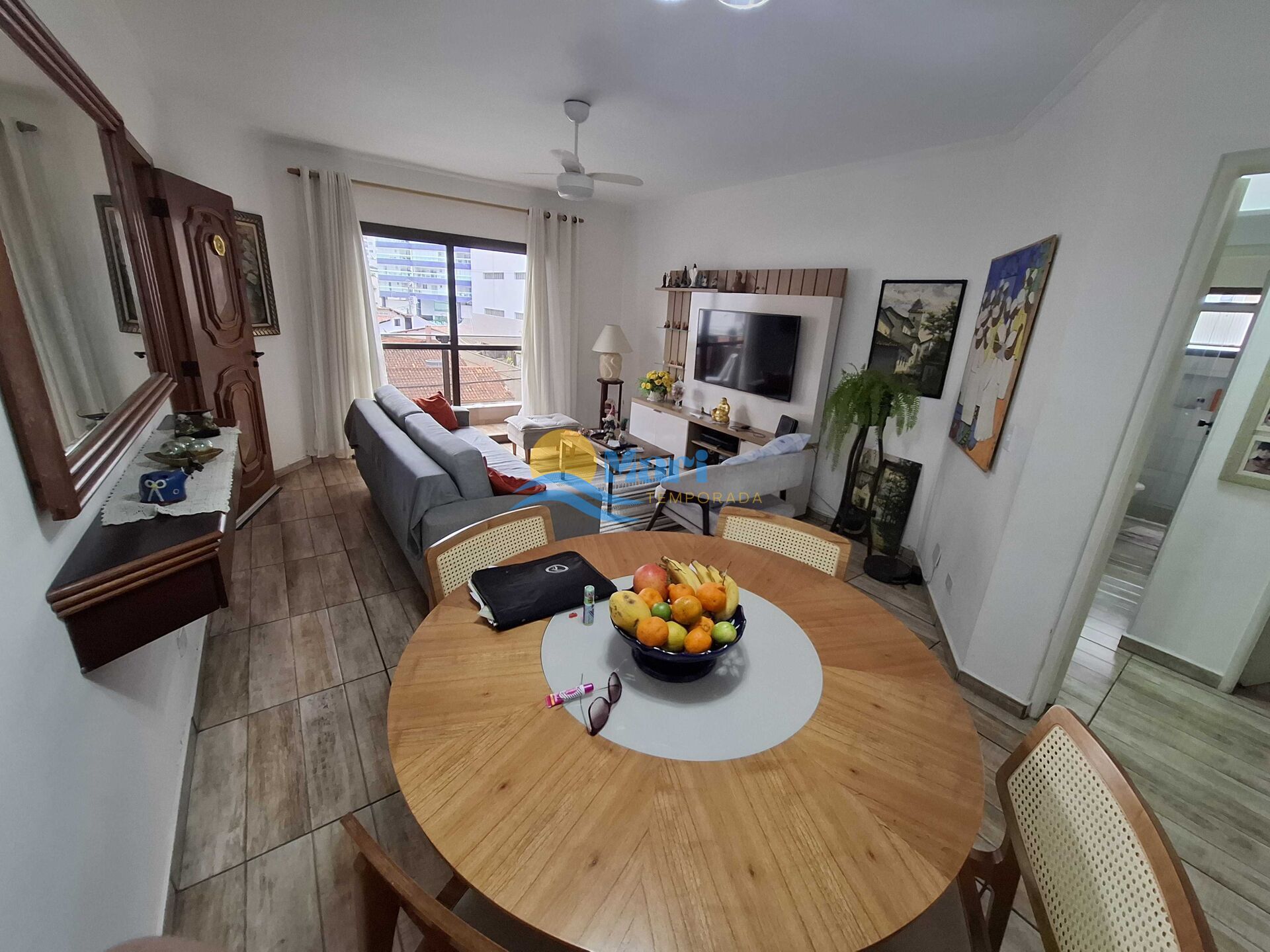 Apartamento à venda no bairro Caiçara em Praia Grande, SP. 3 dormitórios sendo 1 suíte, sala dois ambientes com sacada, cozinha planejada, área de serviço, banheiro social e uma vaga de garagem.