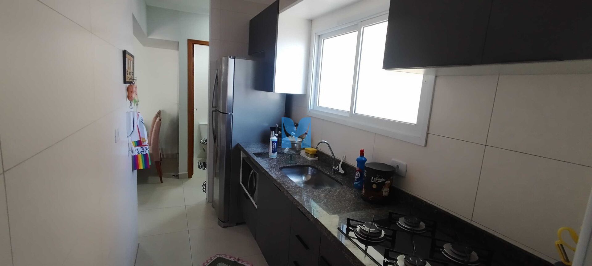 Apartamento à venda no bairro Caiçara em Praia Grande, SP. 2 dormitórios sendo 2 suíte), sala dois ambientes com sacada envidraçada, cozinha planejada de alta, área de serviço, Lavabo e uma vaga de garagem.