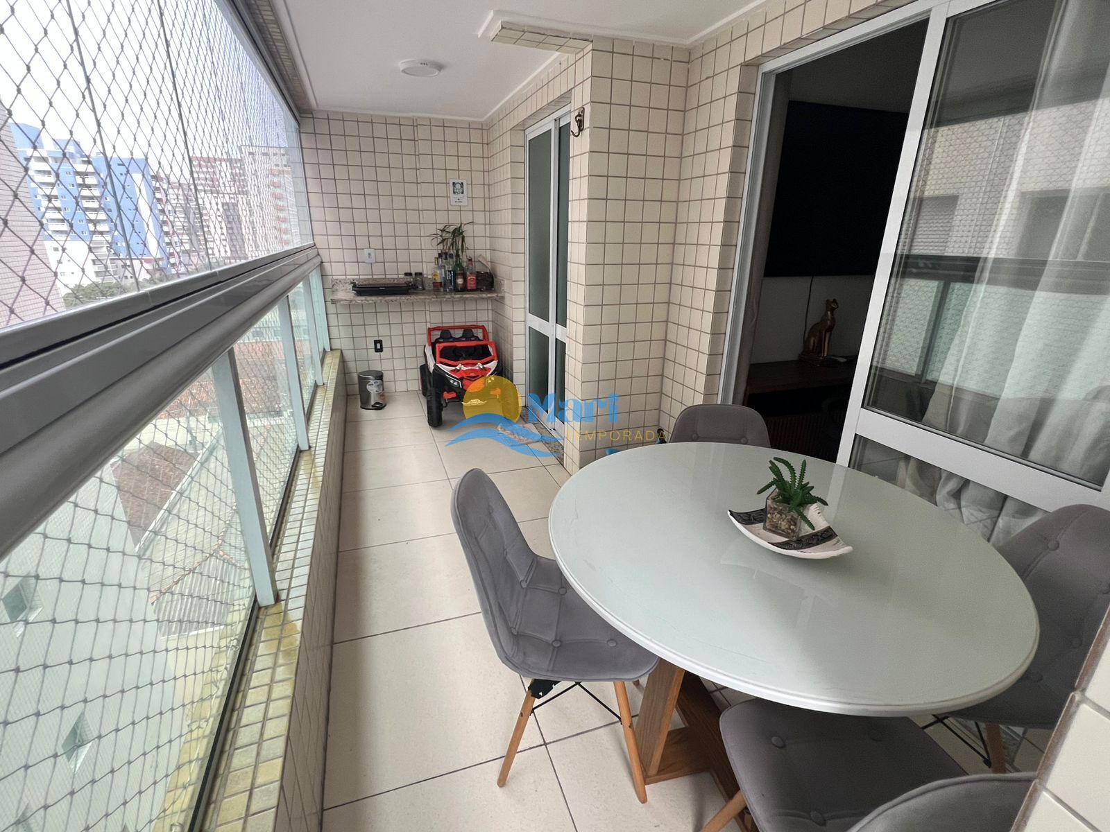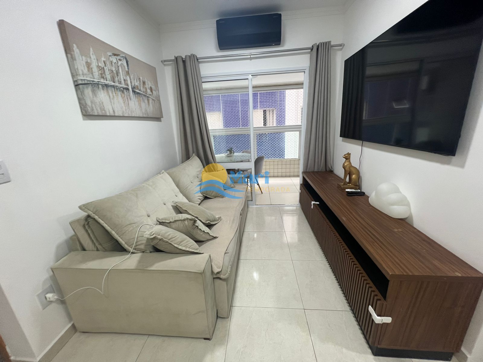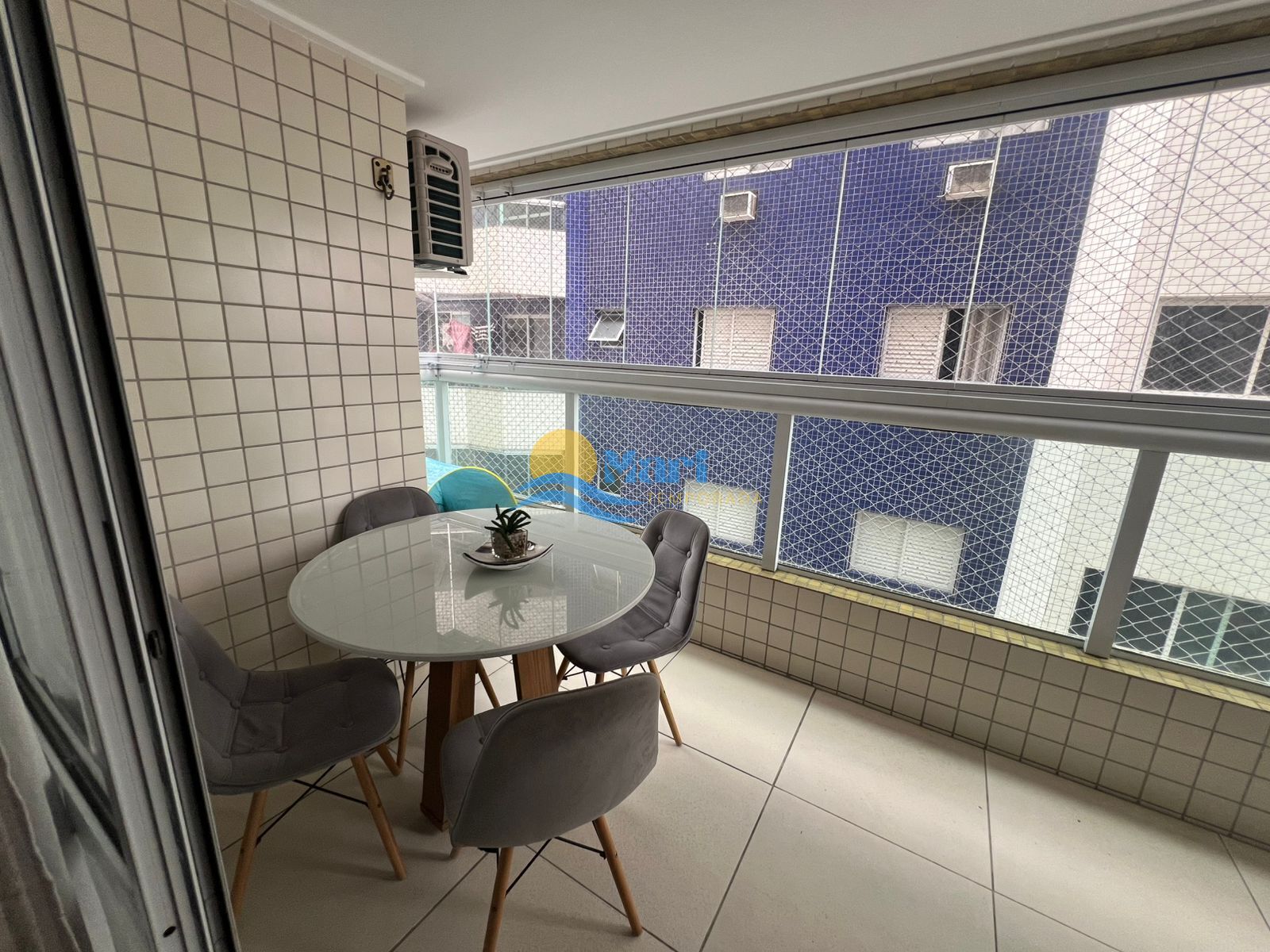 Apartamento para venda no bairro Guilhermina em Praia Grande - SP. Contendo: 1 dormitório, sala com sacada gourmet envidraçada, cozinha, área de serviço, banheiro social e uma vaga de garagem. Mobila que ficará: Armários na cozinha, guarda-roupa, e mobília do banheiro.