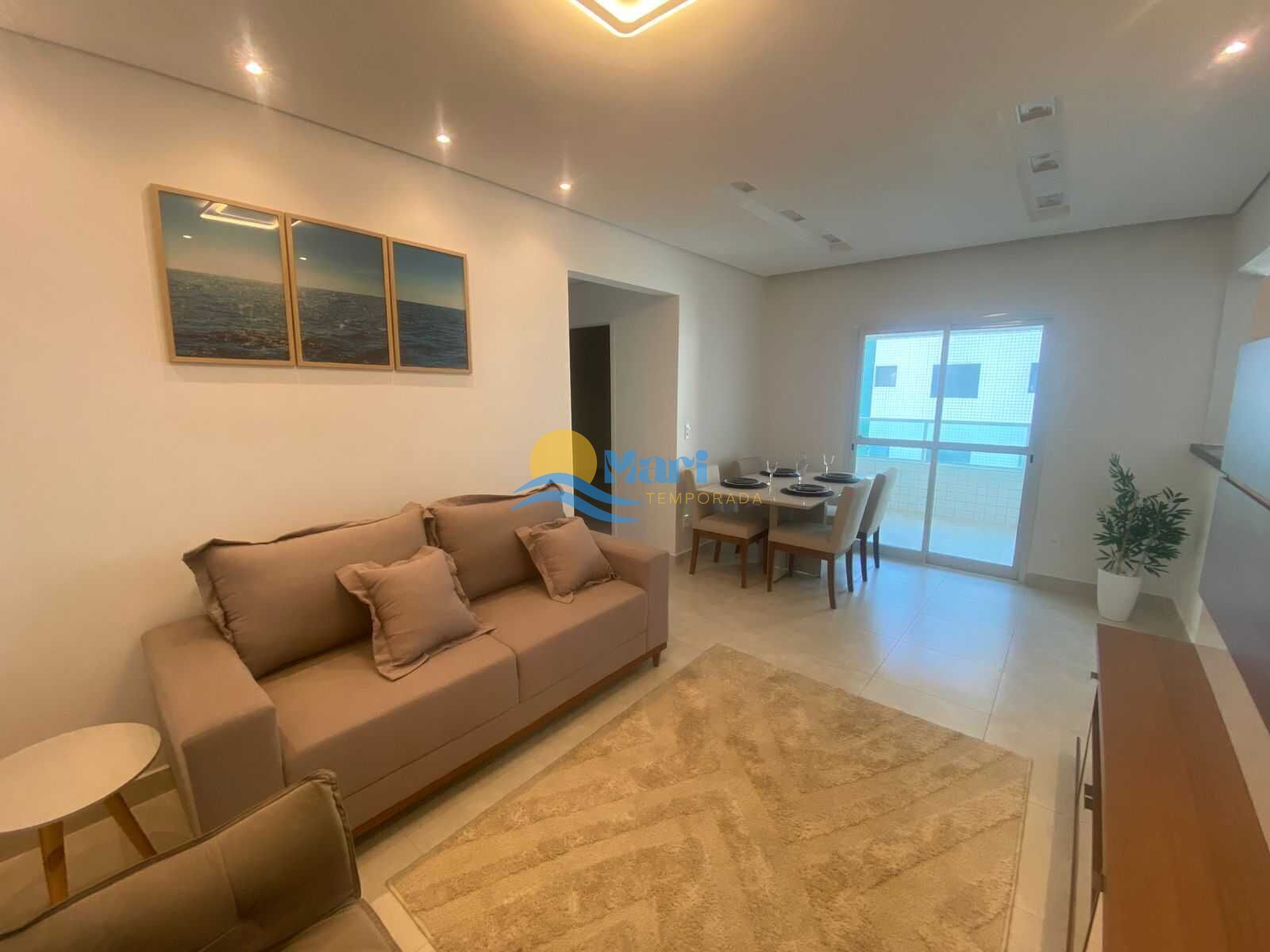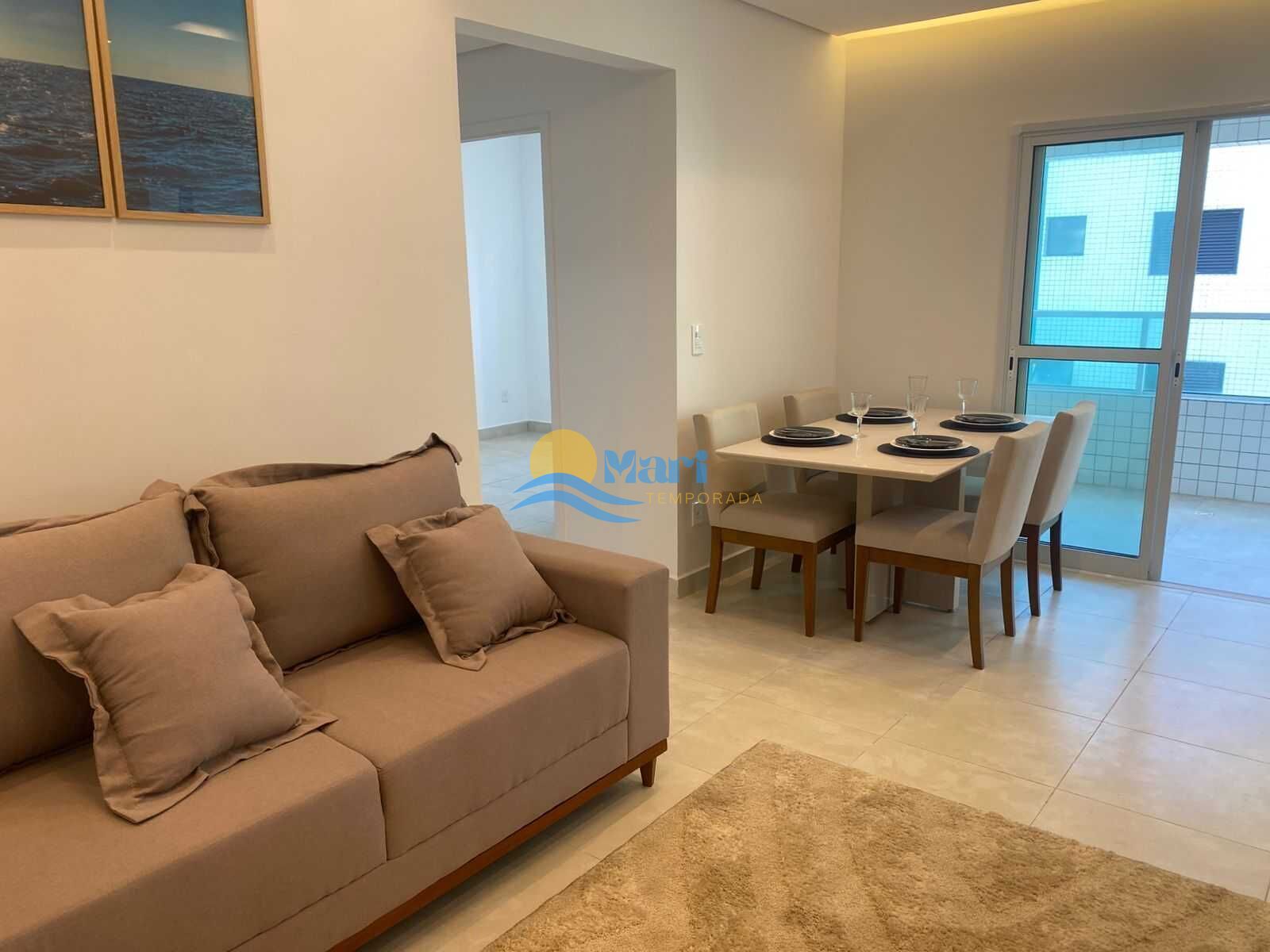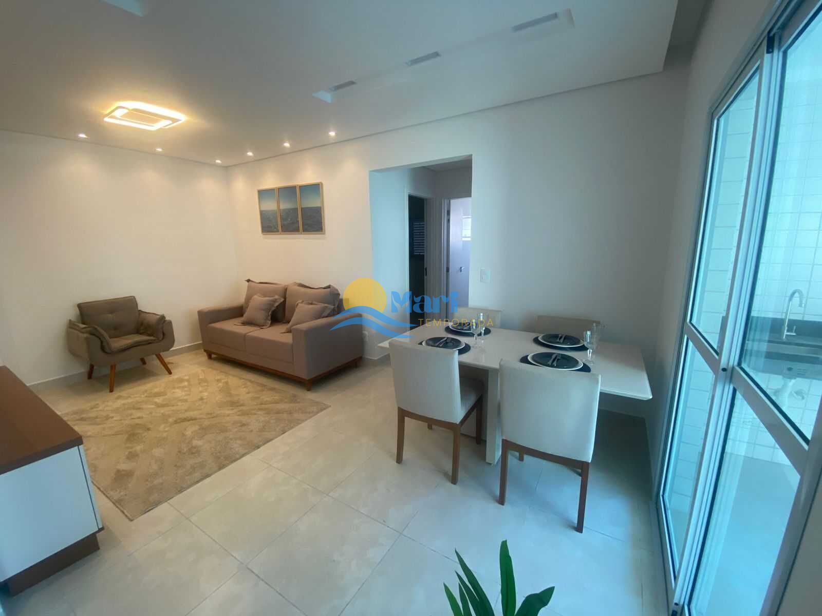 Apartamento à venda no bairro Aviação em Praia Grande, SP. 2 dormitórios sendo 1 suíte, sala dois ambientes com sacada envidraçada, cozinha planejada, área de serviço, banheiro social e uma vaga de garagem.