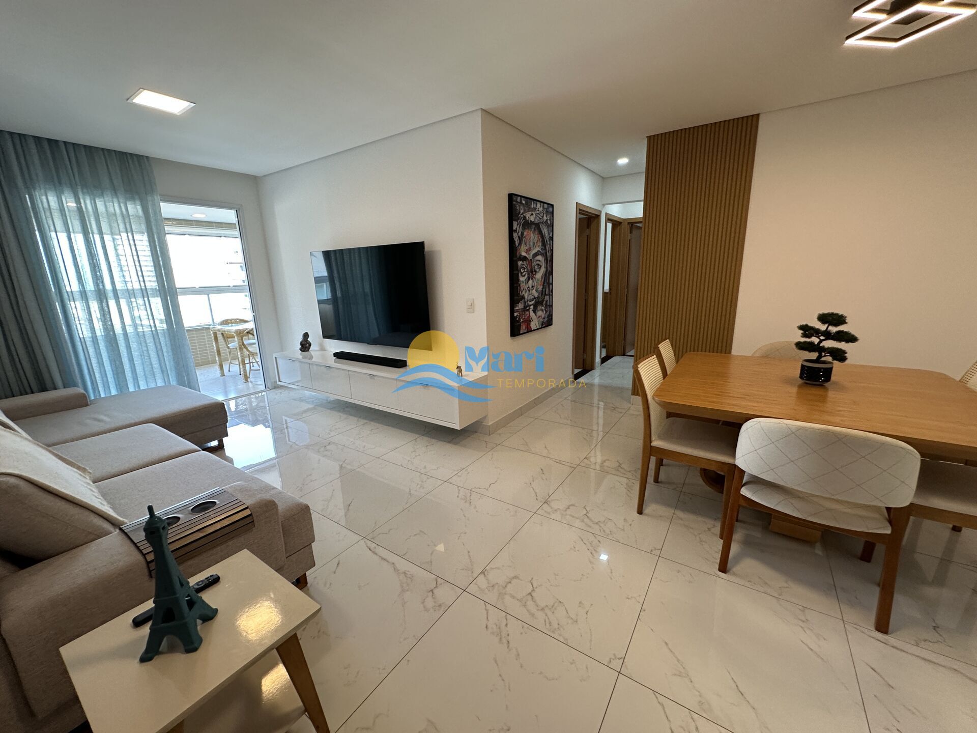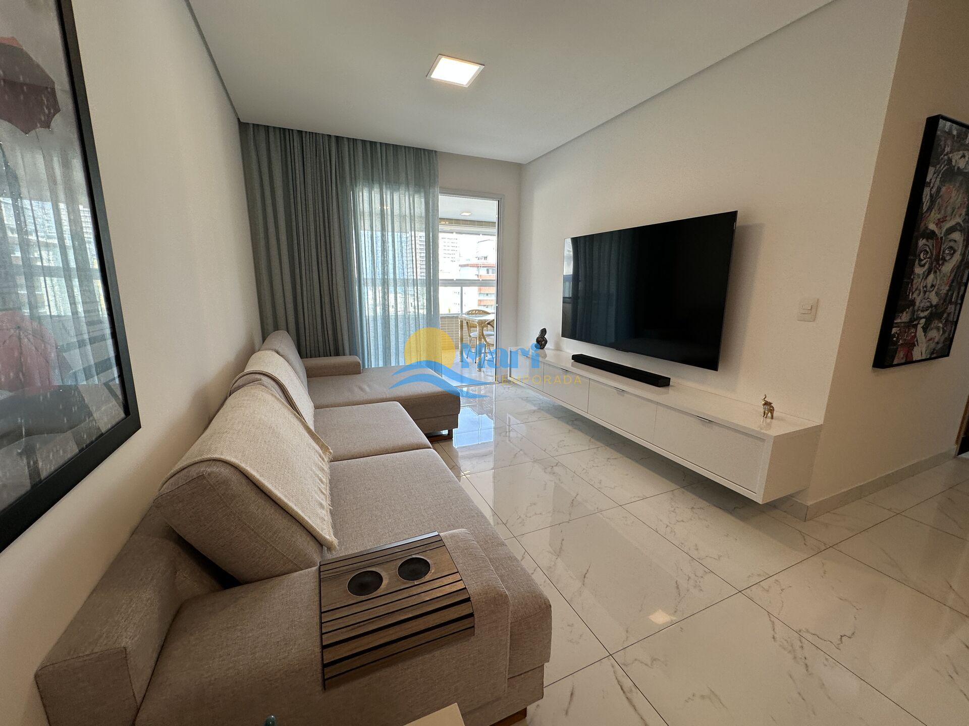 Apartamento à venda no bairro Canto do Forte em Praia Grande, SP. 3 dormitórios sendo 3 suítes, sala dois ambientes com sacada envidraçada, cozinha planejada, área de serviço, banheiro social e duas vagas de garagem.