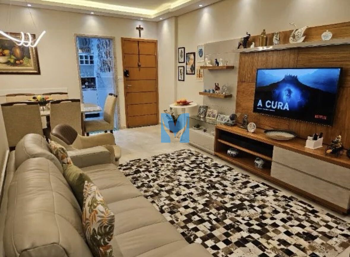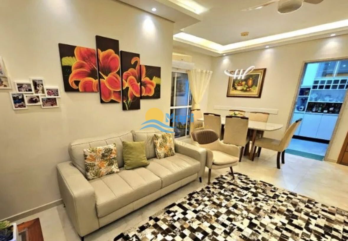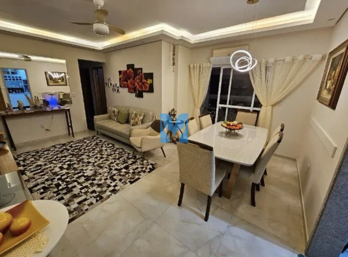 Apartamento à venda no bairro Canto do Forte em Praia Grande, SP. 3 dormitórios sendo 2 suítes, sala dois ambientes com sacada, cozinha, área de serviço, banheiro social e duas vagas de garagem.