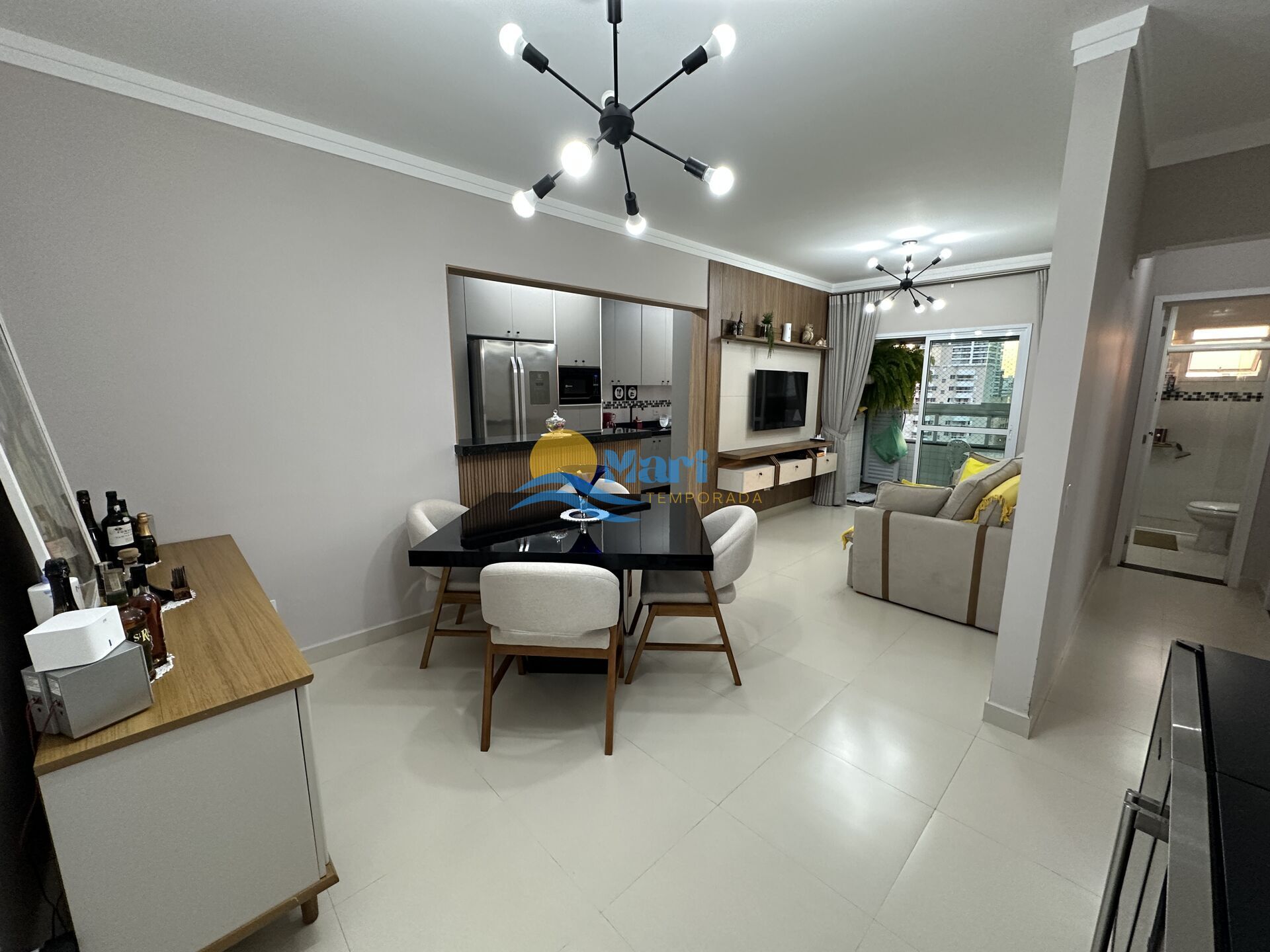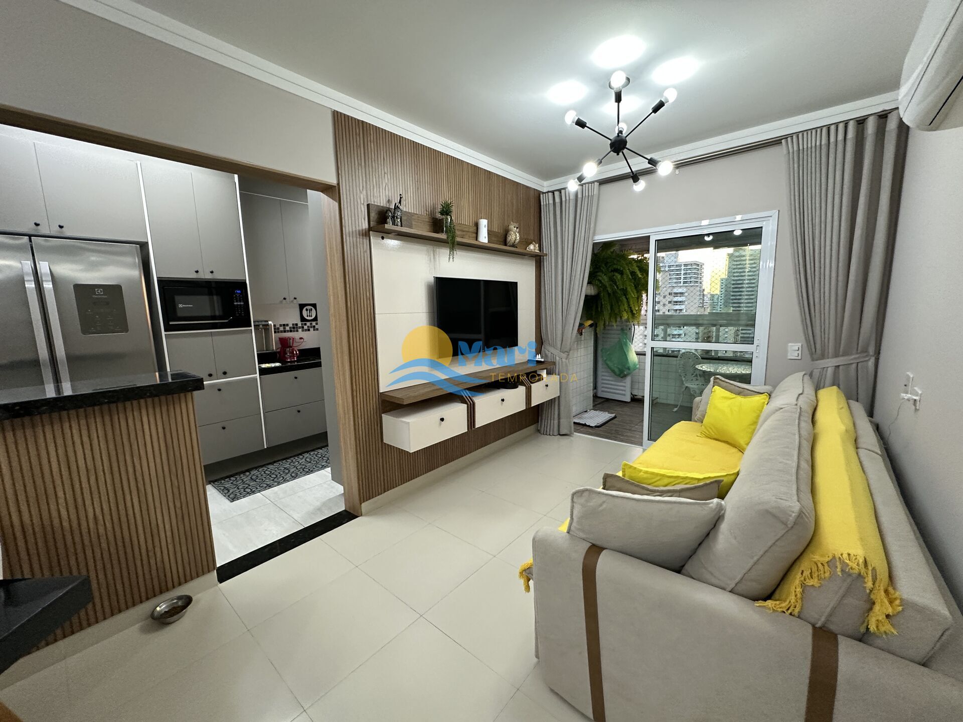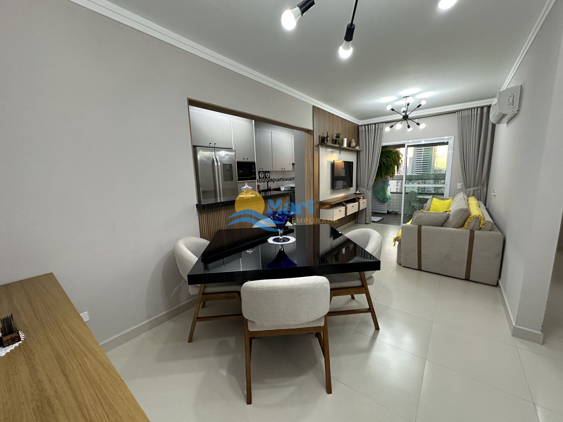 Apartamento à venda no bairro Caiçara em Praia Grande, SP. 2 dormitórios sendo 1 suíte, sala dois ambientes com varanda envidraçada, cozinha planejada, área de serviço, banheiro social e uma vaga de garagem. Será vendido mobiliado retirando colchão da suite, decoração, itens pessoais e as adegas.