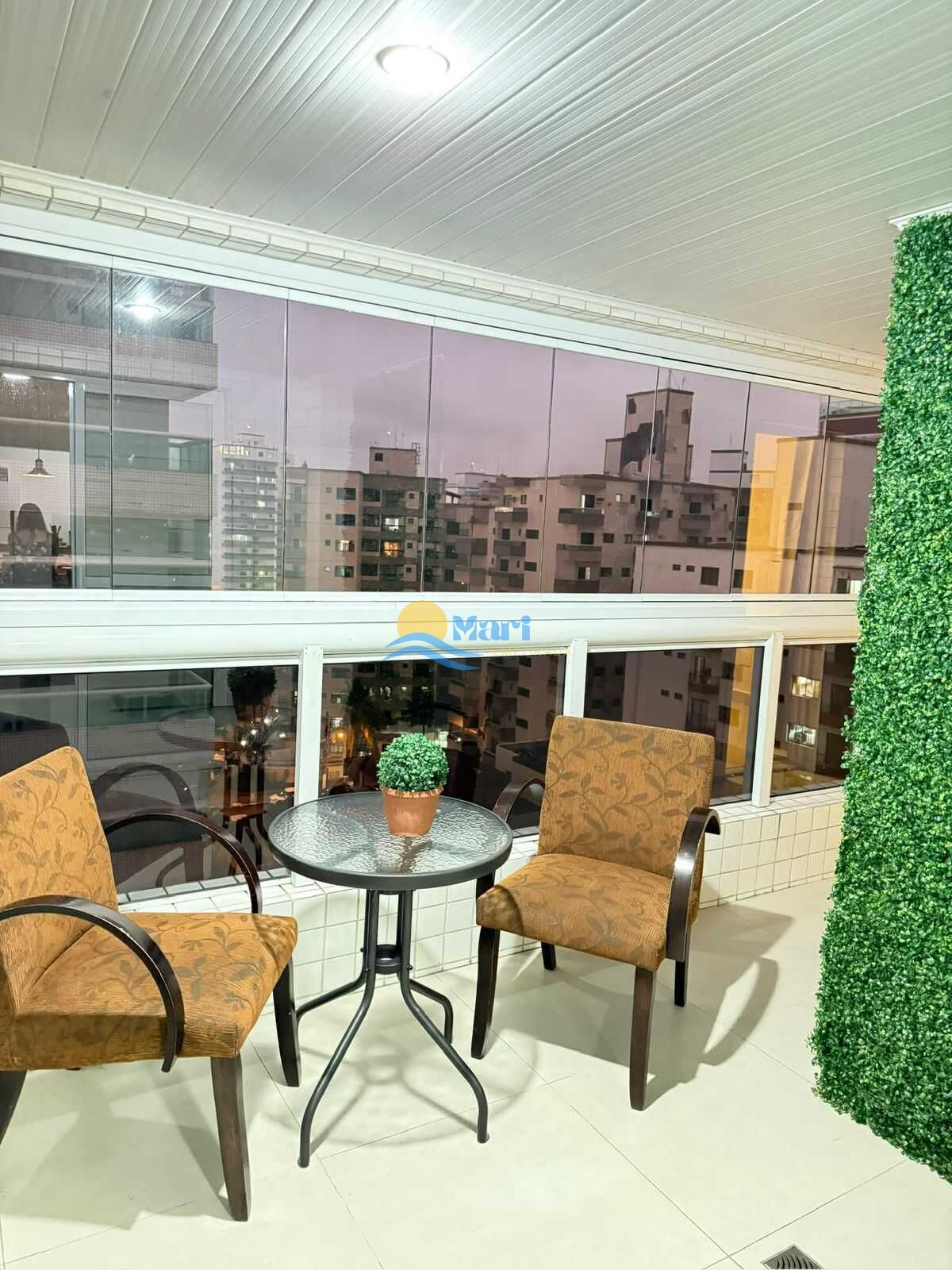 Apartamento à venda no bairro Ocian em Praia Grande, SP. 2 dormitórios sendo 1 suíte, sala dois ambientes com sacada envidraçada, cozinha planejada, área de serviço, banheiro social e duas vagas de garagem.