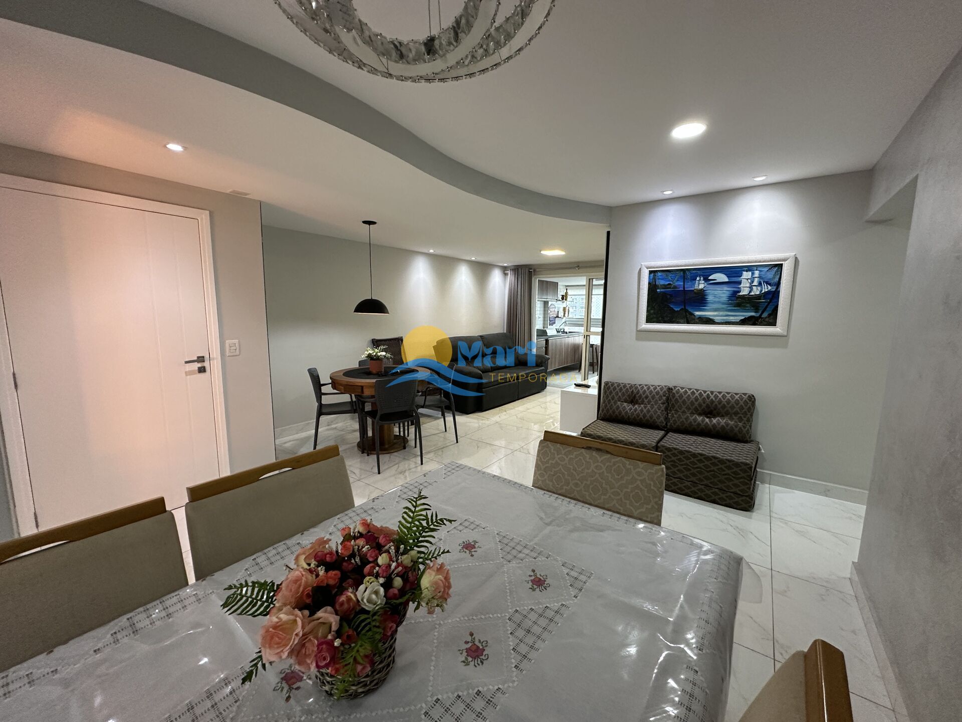 Apartamento à venda no bairro Vila Guilhermina em Praia Grande, SP. 3 suítes, sala dois ambientes com varanda gourmet, lavabo, cozinha, área de serviço, dep de empregada, depósito individual no térreo e 2 vagas determinadas e escrituradas no subsolo (ao lado do bicicletário). Imóvel mobiliado, quitado e escriturado. Aceita financiamento.