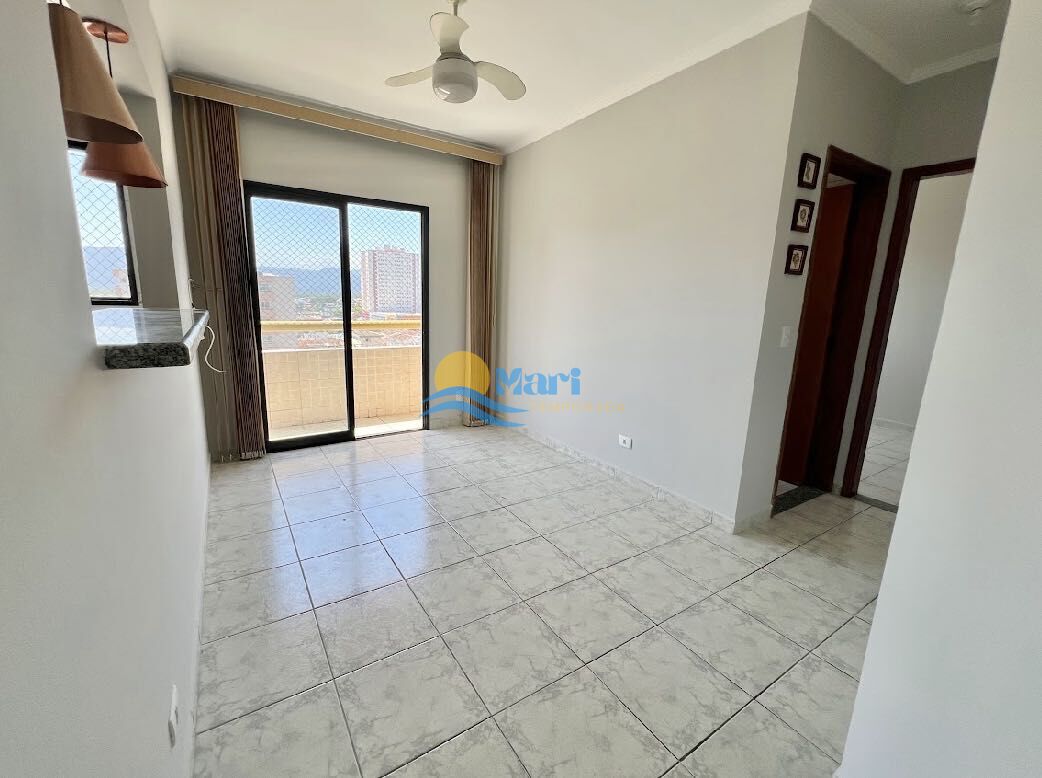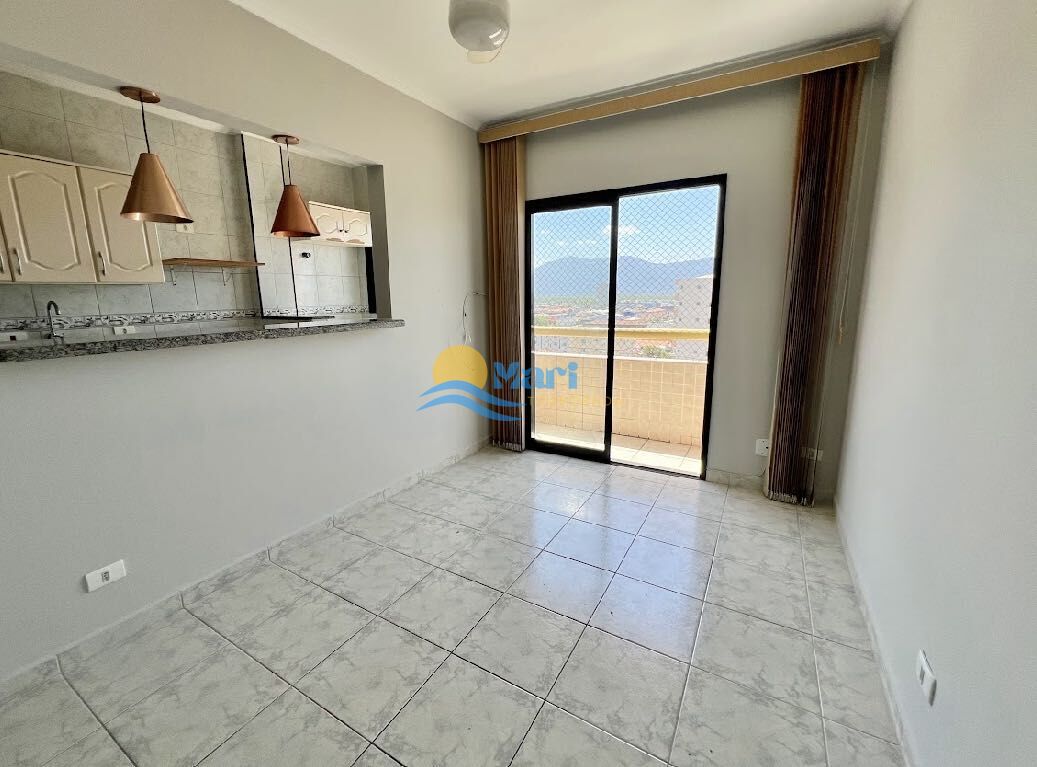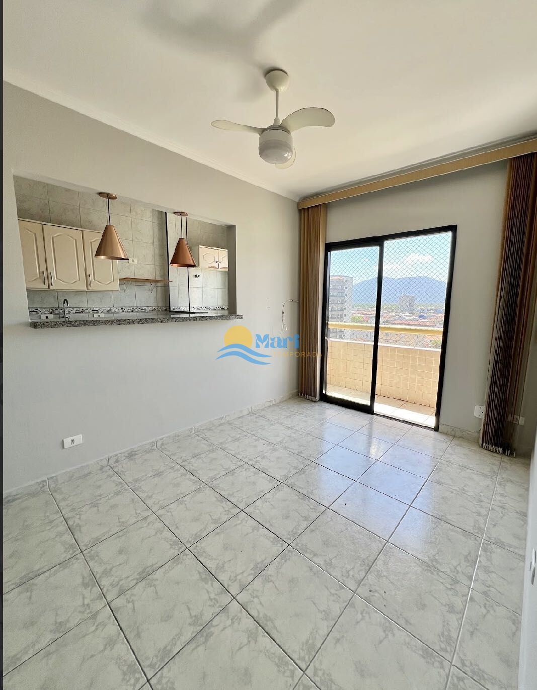 Apartamento à venda no bairro Tupi em Praia Grande, SP. 1 dormitório, sala com sacada e vista livre, cozinha estilo americana, área de serviço, banheiro social e uma vaga de garagem.
