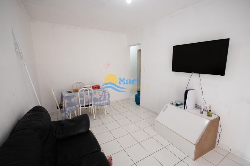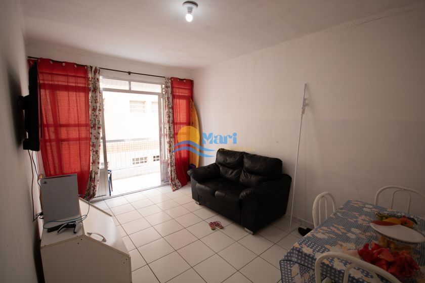 Apartamento à venda no bairro caiçara em Praia Grande, SP. 1 dormitório, sala dois ambientes, cozinha, 1 banheiro, área de serviço e 1 vaga de garagem.