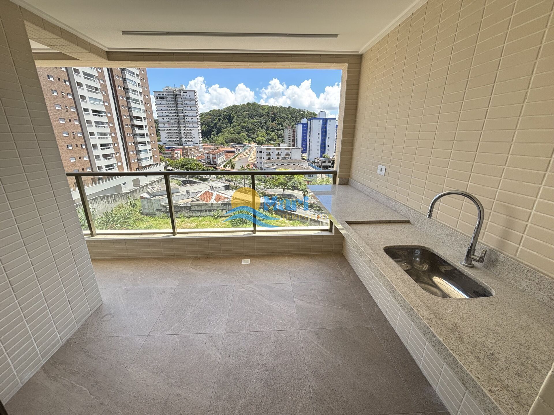 Apartamento à venda no bairro Canto do Forte em Praia Grande, SP. 2 dormitórios sendo 2 suíte, sala dois ambientes com varanda gourmet, cozinha estilo americano, área de serviço, lavabo e duasvaga de garagem demarcadas.